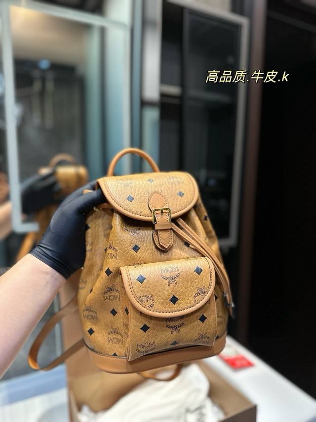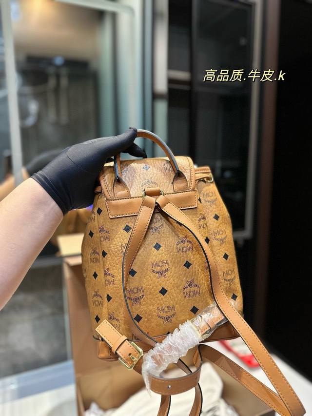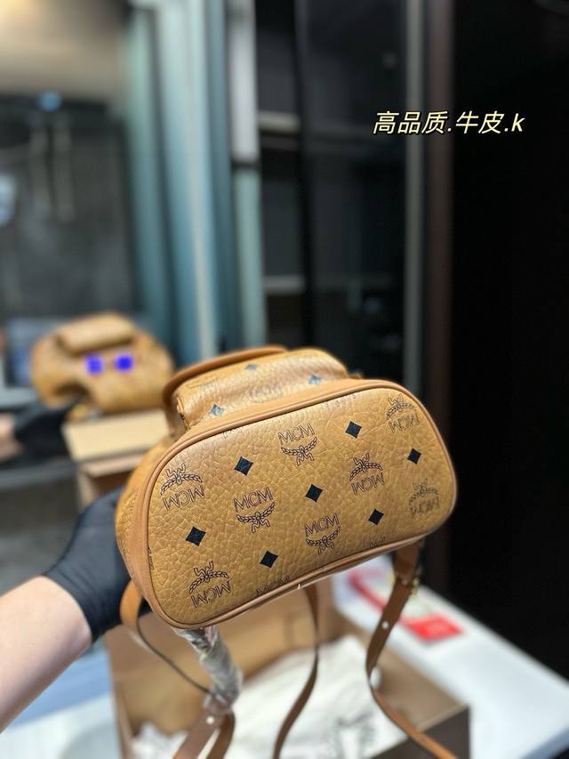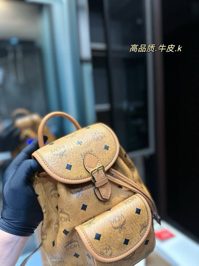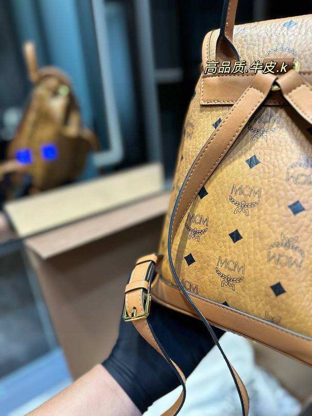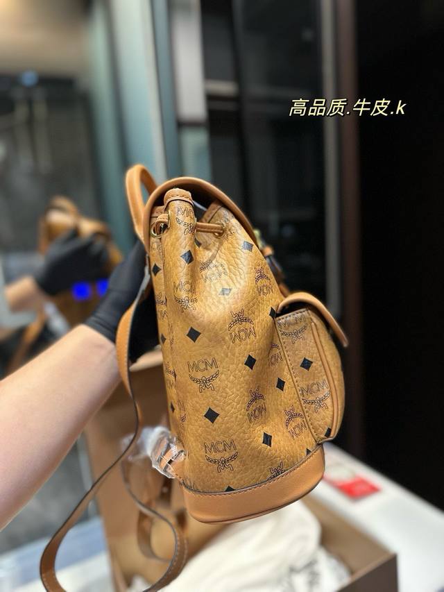 Size:27-12-32Cm Mcm经典双肩包 原单!原单!原单! 巧妙的丝印效果, 立体而自然, 以中轴为对称中心线的上线倒向对称,...