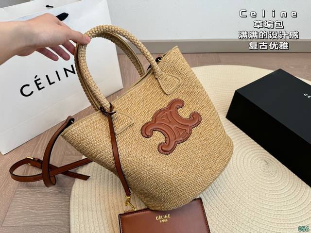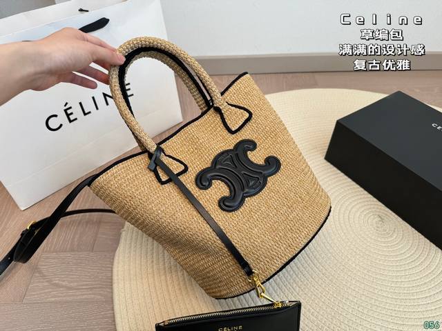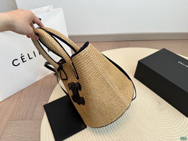 小号 赛琳celine 拉菲草菜篮子草编子母包 托特包度假风tote 尺寸25Cm
