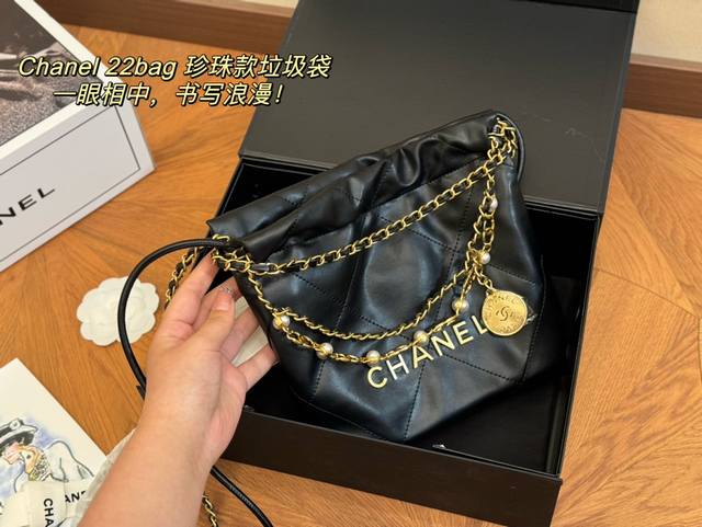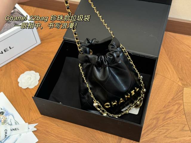 / 配折叠盒飞机盒 香奈儿 珍珠迷你垃圾袋 百搭经典 精致的一只 真的超级无敌巨可爱 仙气满满 小姐姐日常必入款 尺寸:20.20Cm
