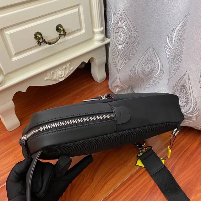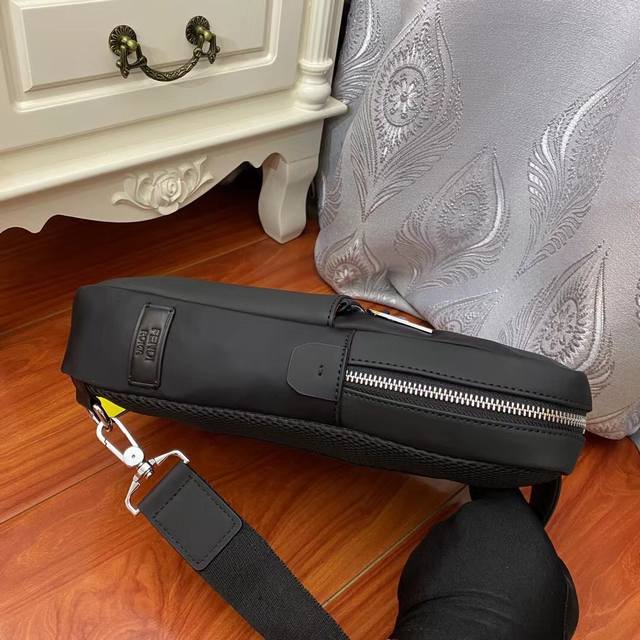 / 爆 型号:2335银色 芬迪fendi小怪兽长方形背包男士斜挎胸包,以黑色科技布料制成,缀以同色系皮革。旅行体验极佳的包袋,设有两个隔层和实用的尼龙肩带,长度可