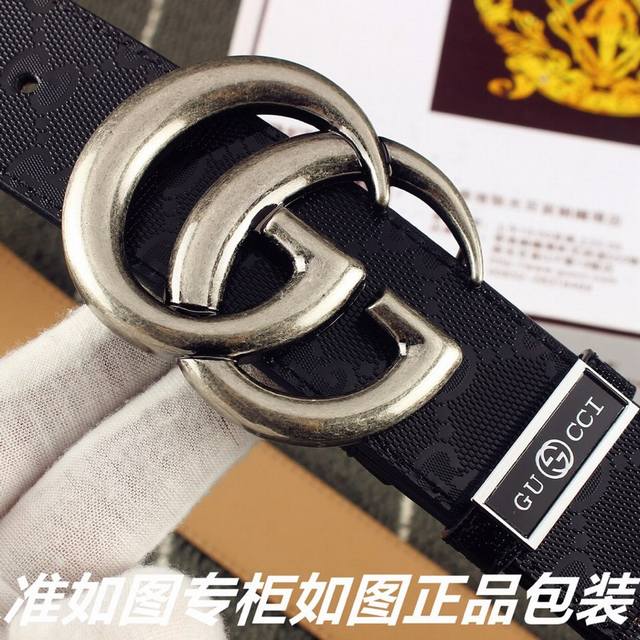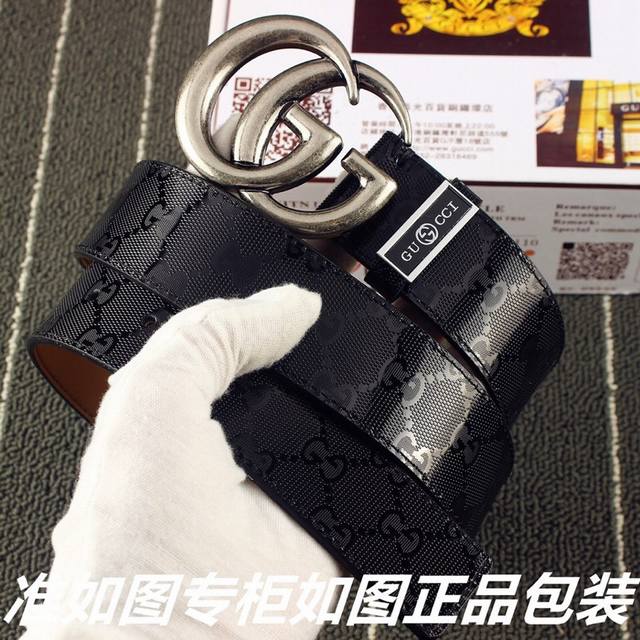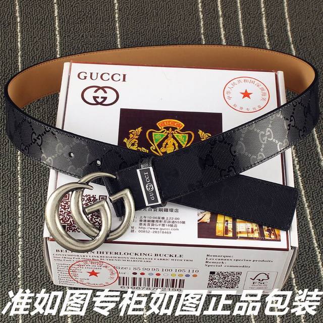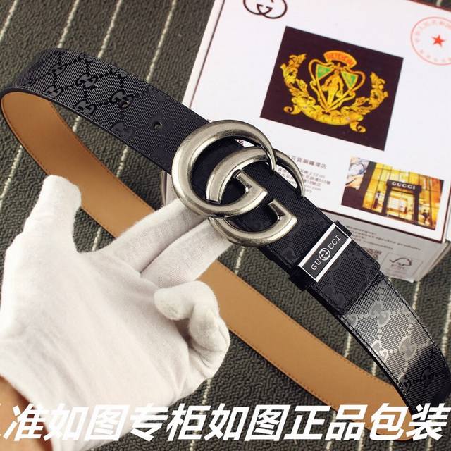 Gucci 古奇 钢扣 原单牛皮腰带 男士经典款皮带 时装搭配必备款 优质扣头 采用原厂牛皮带身 机械打孔 高品质全套包装 礼盒 礼袋...
