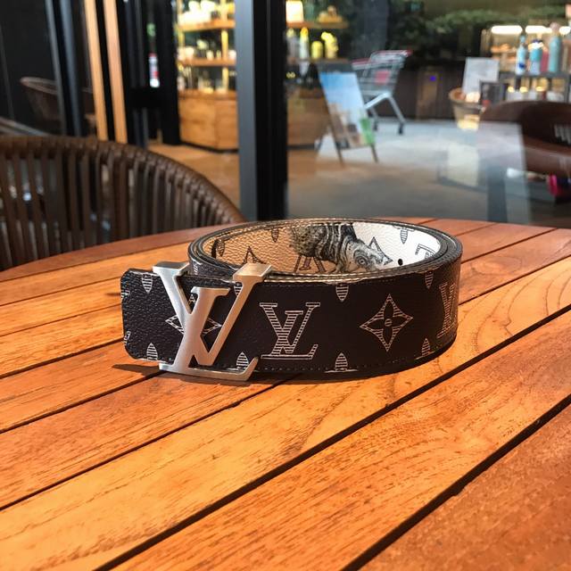 路易世家原单货!秒杀市场一切伪原版!懂货的来!市场唯一对版彩印chapman兄弟之手的动物印花 双面设计 正品黑色 米色印花 搭配标志性reverso钢扣 可两用 正品尺寸40Mm