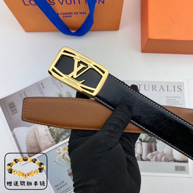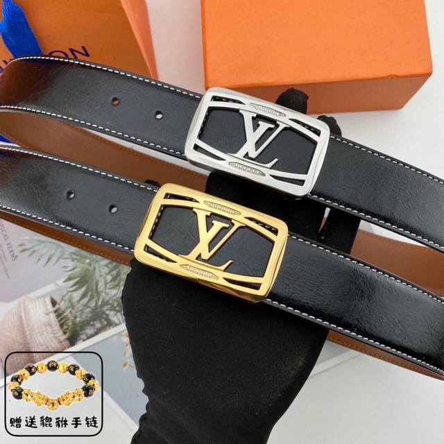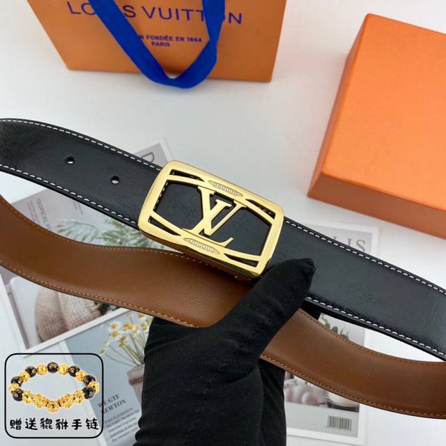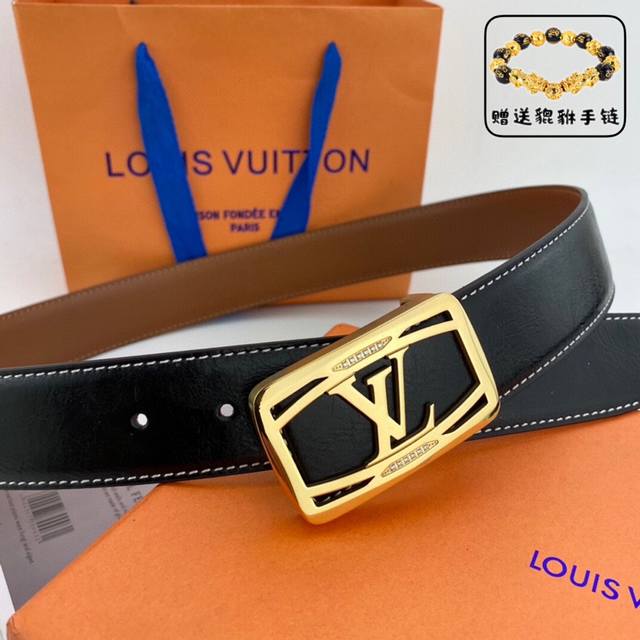 / 路易威登 Lv 男士花皮腰带38Mm 可双面使用 专柜走线 搭配新款内穿钻扣 配包装