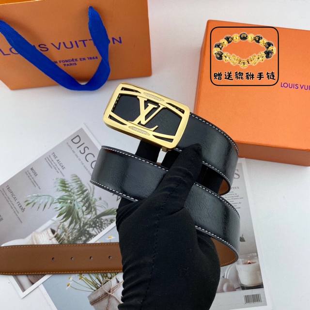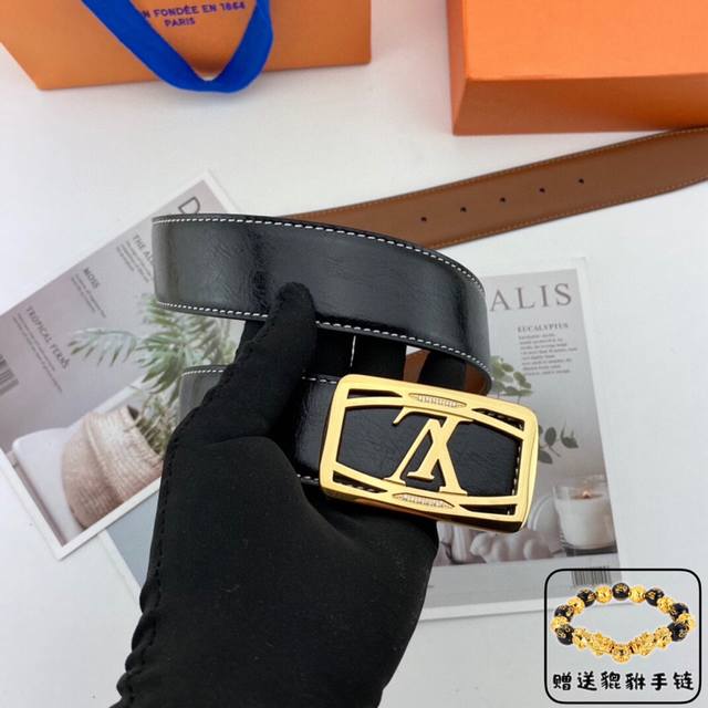 Louisvuitton 路易威登 钢扣 原单牛皮腰带 男士经典款皮带 时装搭配必备款 优质扣头 采用原厂牛皮带身 机械打孔 高品质全套包装...