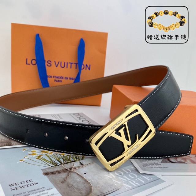 路易威登 Lv 男士花皮腰带38Mm 可双面使用 专柜走线 搭配新款内穿钻扣 配包装
