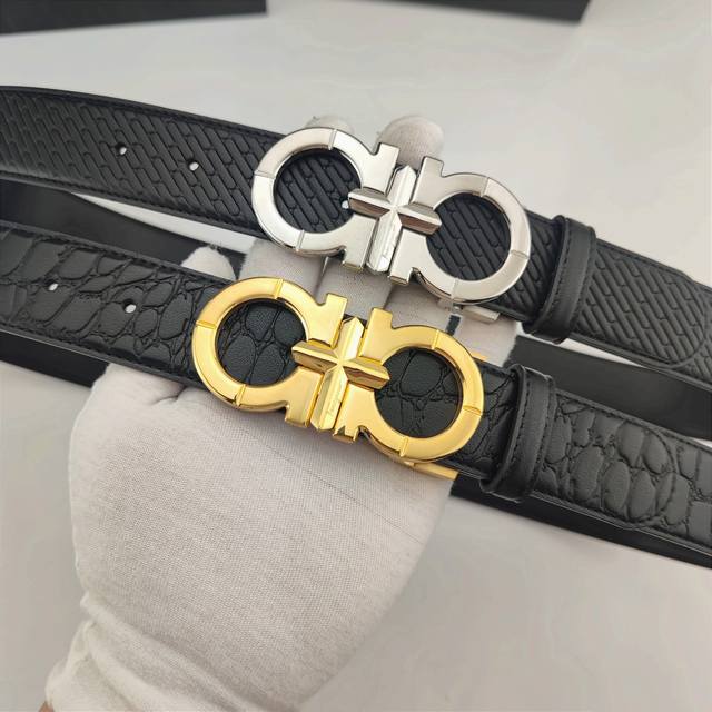 菲拉格慕 男士花皮腰带35Mm 双面进口花皮皮压制。可双面使用 专柜走线 搭配新款钢扣