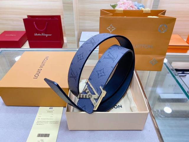 路易威登louis Vuitton 法国 专柜品质 官网同步 宽度3.8Cm 精美钢扣头 原版意大利双面进口小牛皮原版花纹 手感极佳 上身郊果棒 商务休闲两用