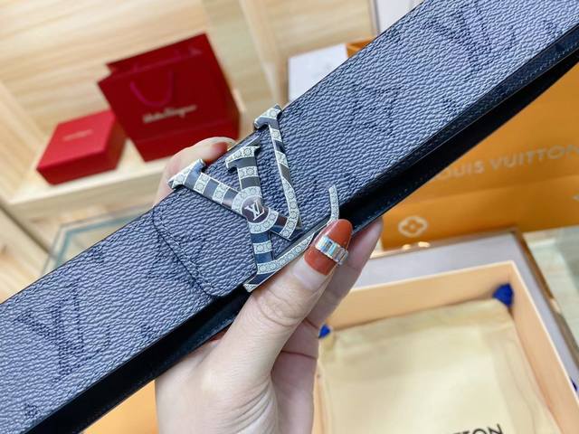/ 路易威登louis Vuitton 法国 专柜品质 官网同步 宽度3.8Cm 精美钢扣头 原版意大利双面进口小牛皮原版花纹 手感极佳 上身郊果棒 商务休闲两用