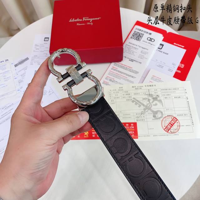 / Ferrago 菲拉f 雙面头层牛皮 全新效果精钢材质搭扣 寬度35毫米 該皮帶可調節 且能根據需要裁剪達到修身效果