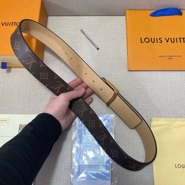 同步 Lv路易男士 宽度4.0 Cm 简单大方 双面使用 佩戴效果非常不错 送礼自用最佳推荐