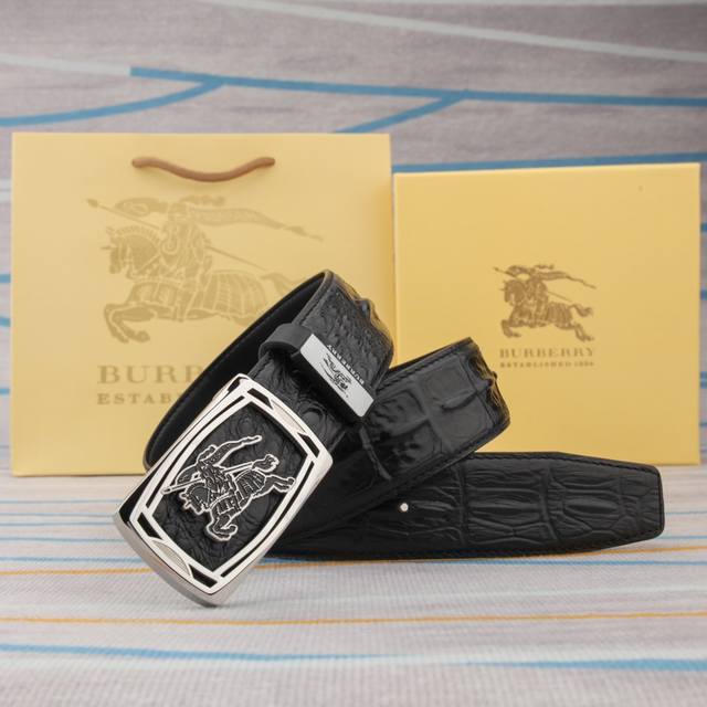 品名:巴宝莉原单 材质:原单牛皮腰带 百分百头层牛皮腰带保证真皮,24K纯钢扣,专柜原单品质、做工精细,时尚大牌,送人自用首选 包装: 请认准如图专柜包装赠送打