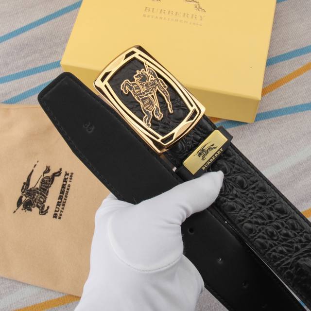 新款 Burberry 巴宝莉专柜同步上新 意大利精制腰带 选用全粒面小牛皮面料打造 搭配镀钯金b字型扣环 宽:3.5Cm 精致优雅简单大方