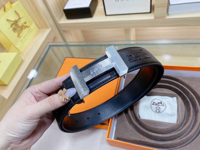 品名: 爱玛仕.Hermes腰带 皮带 原单 型号:挂扣,经典纯钢材质扣头,双面头层牛皮,图片实物拍摄...