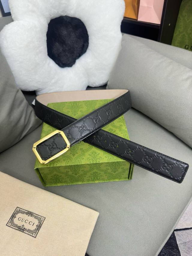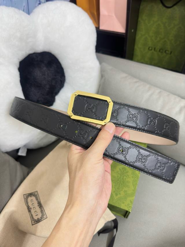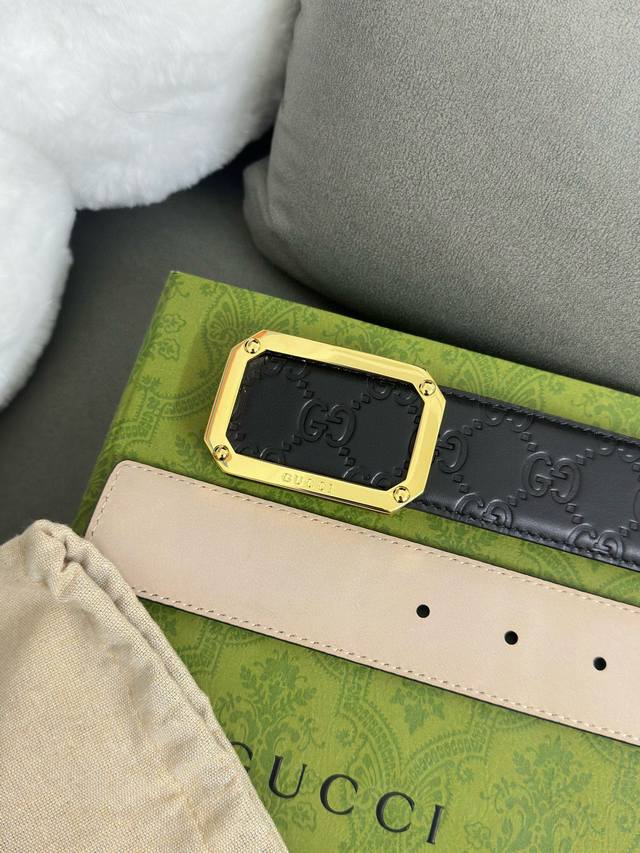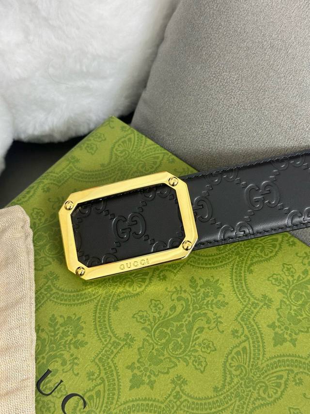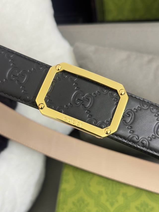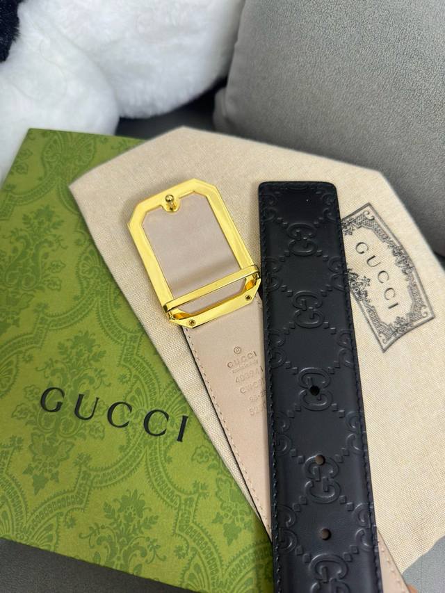 / Gucci 403941 Cwc0N 宽版signature压g花 宽度4.0Cm 镂空四方版扣