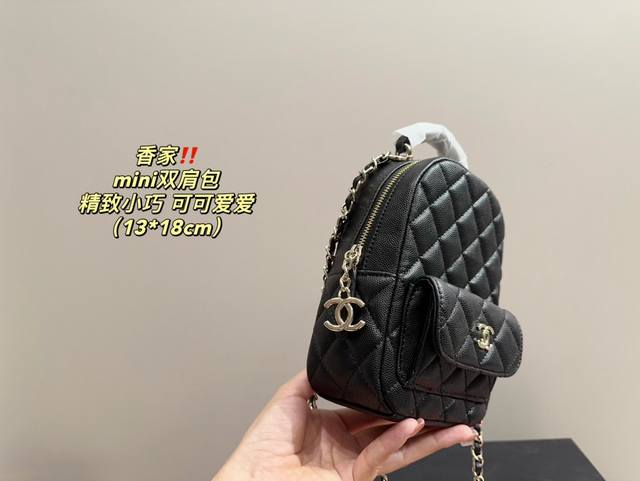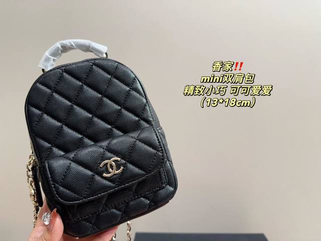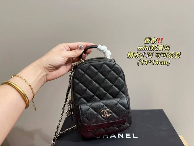 配盒尺寸13.18 香奈儿mini双肩包 时髦拿捏住啦 不显老气好好搭啊 而旦貌美气质加成好高的呀~ 爱死了这份从容优雅