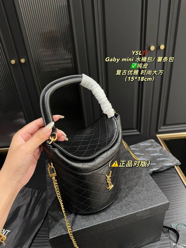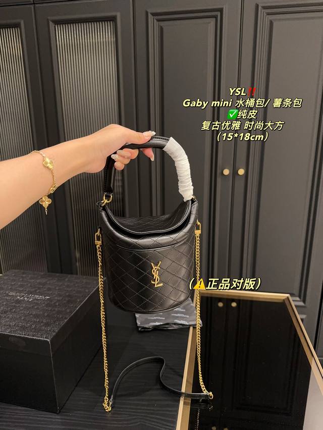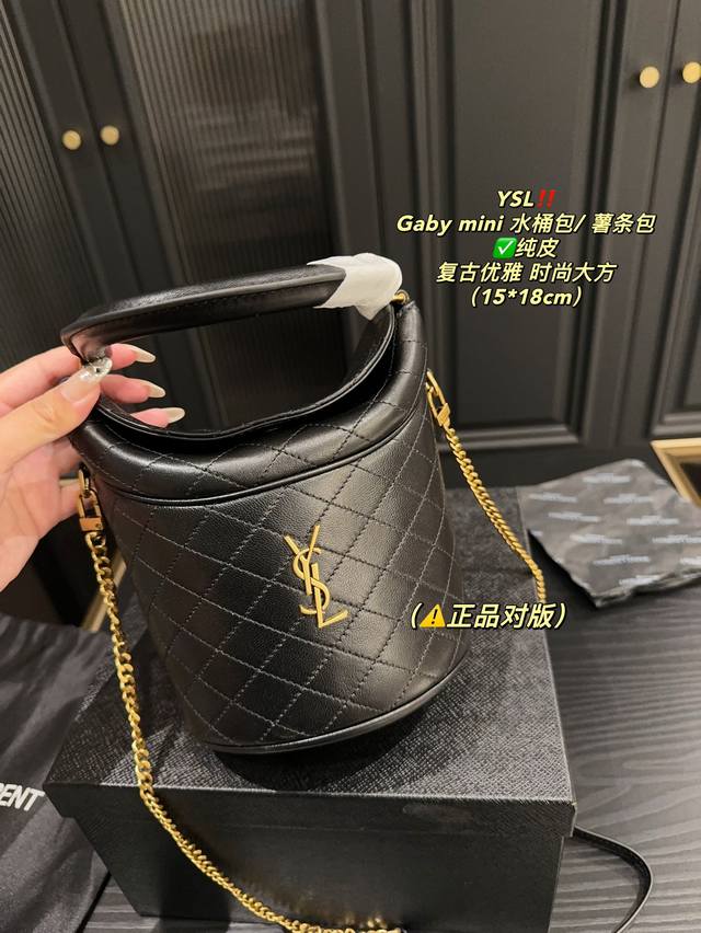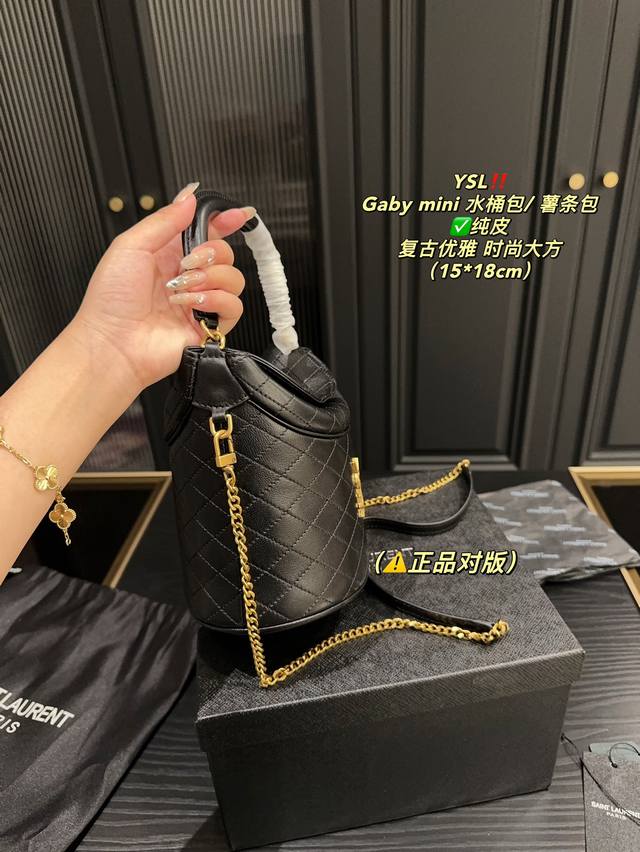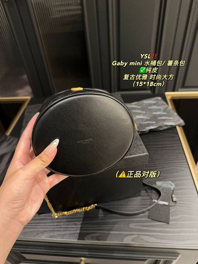水桶包设计,包型圆润而挺括,顶部饰有小翻盖开合,私密性和安全性更高,顶部提手和可拆卸链条肩带,可以有更多背法,适应不同场合!亮点是衍缝工艺勾勒棱形图案,搭配金色微标,流露出复古名伶气质~~~经确认:是个迷人的小东西