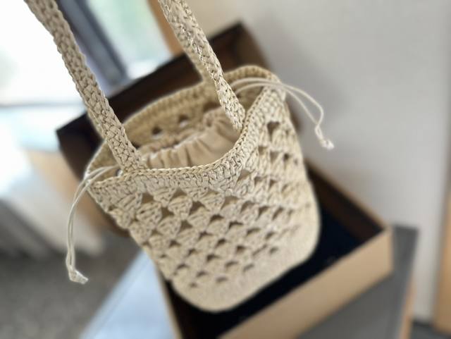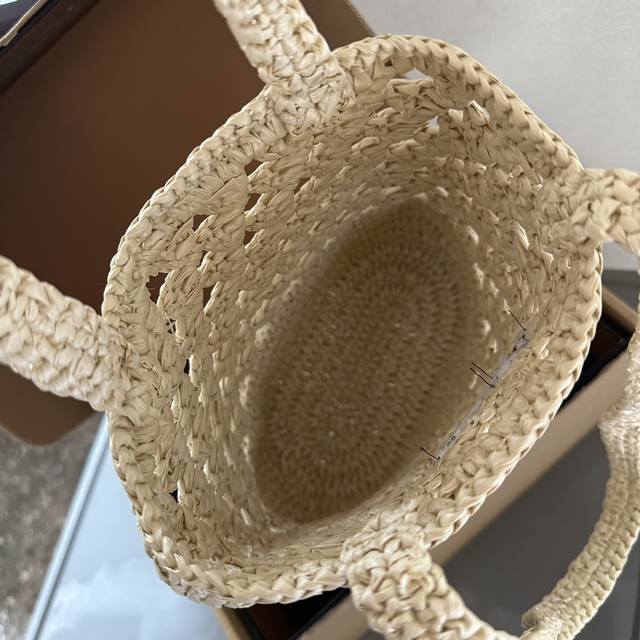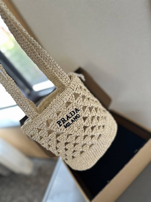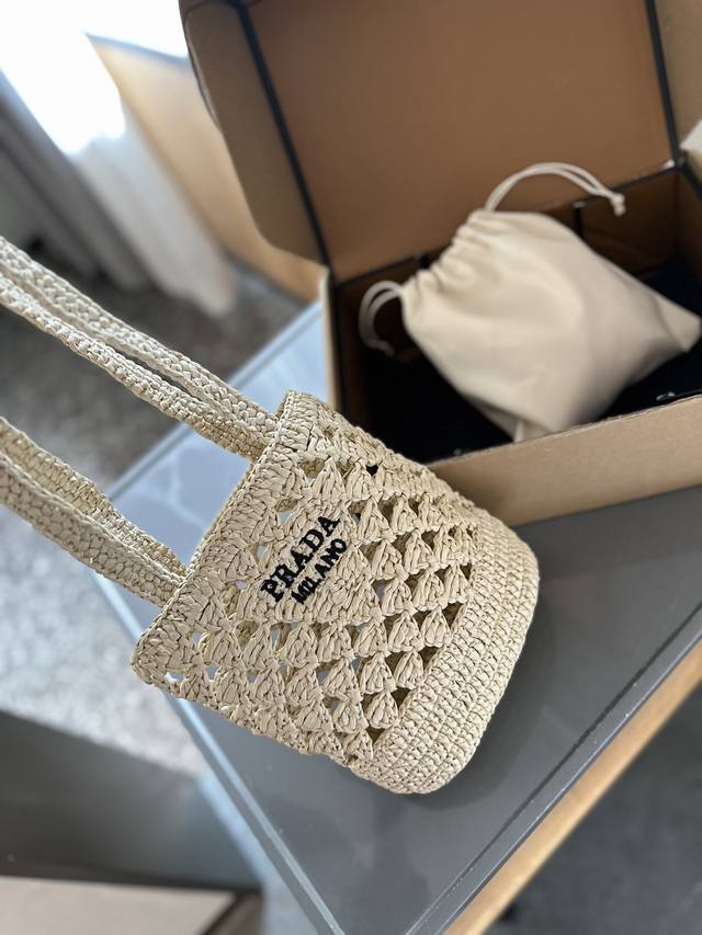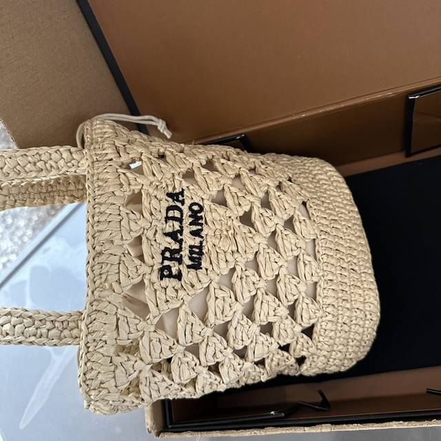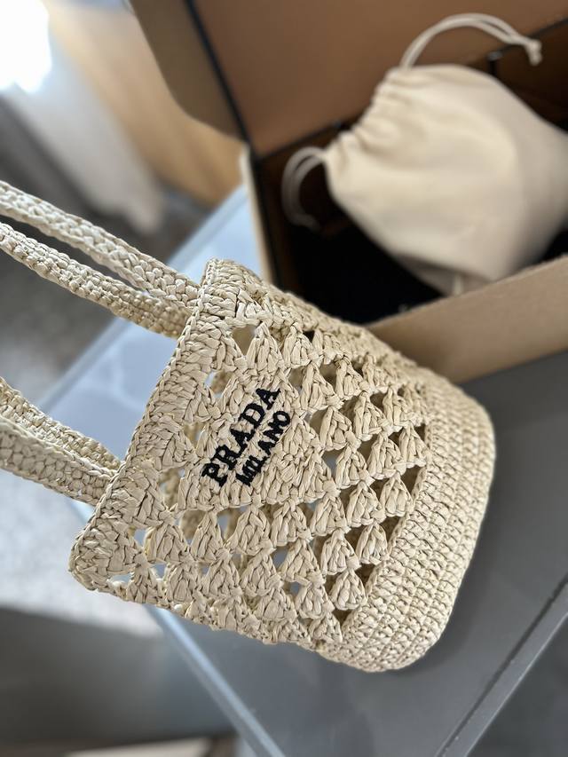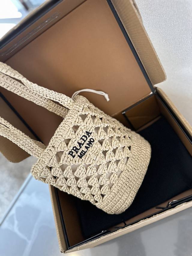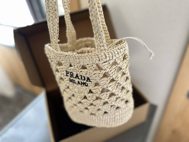 配盒子 普拉达编织水桶包 春夏新款包 采用质朴的天然拉菲草 钩针编织 风格甜美又清新 尺寸 17.5 24 货号6788