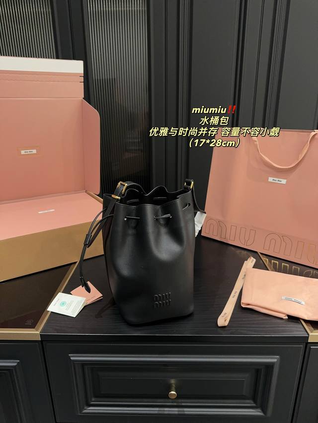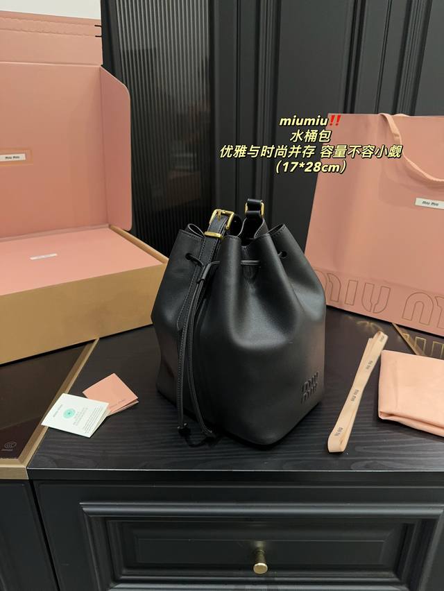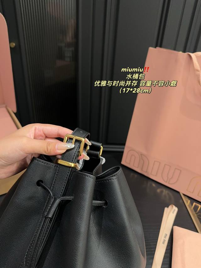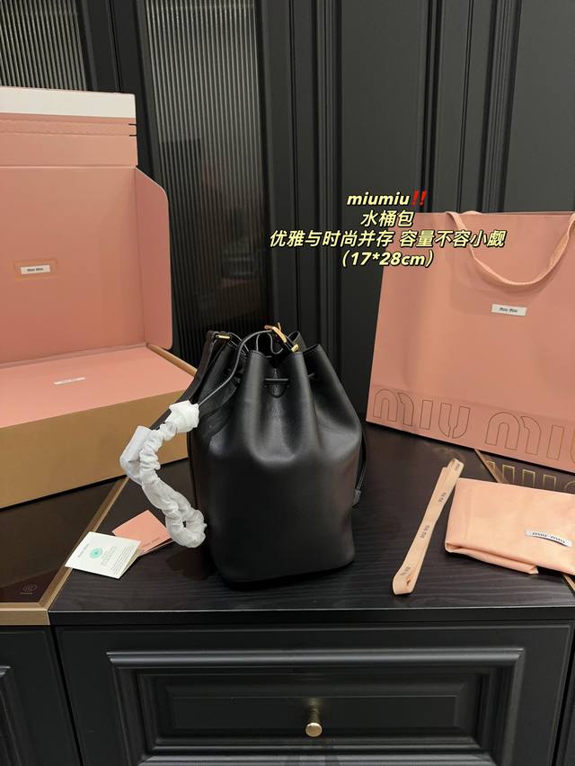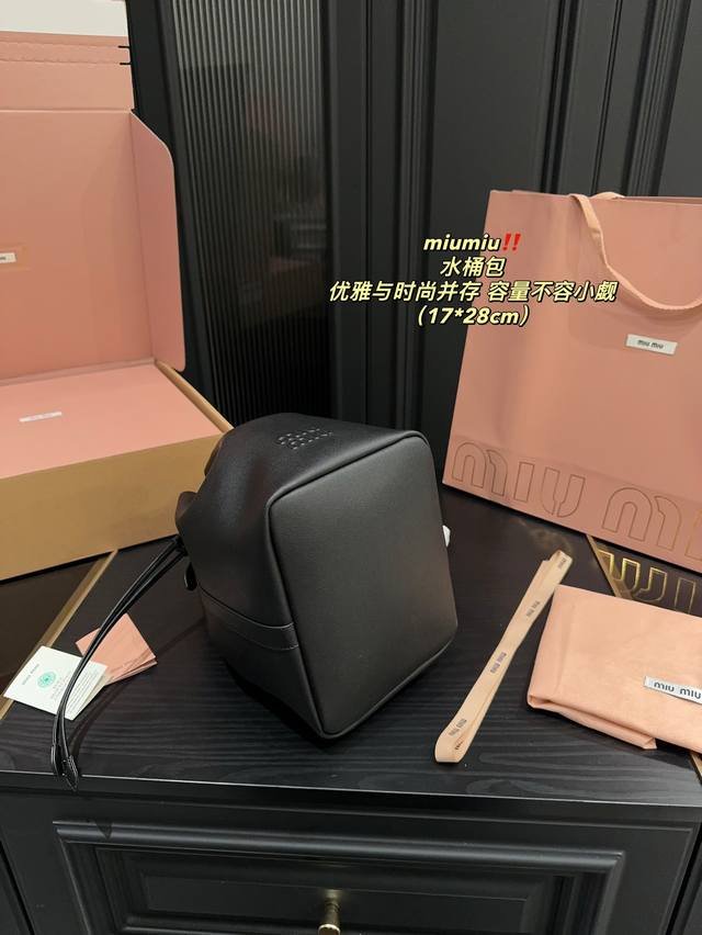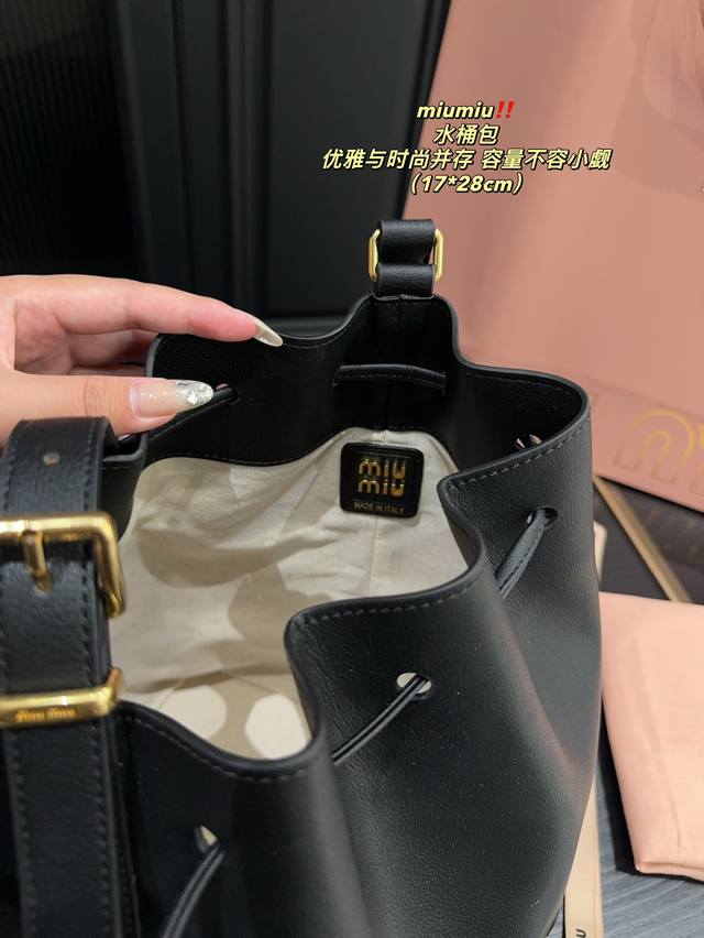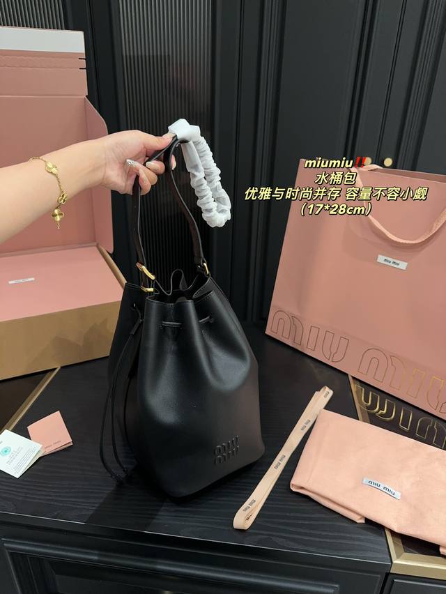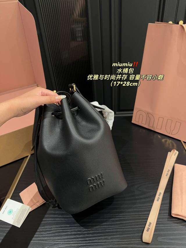 顶级原单大号 全套包装尺寸17.28 Miumiu水桶包 容量不容小觑 女人味满满 优雅与时尚并存 奶乎乎,软绵绵,容量也是足够了,日常生活用品轻松纳入。 背法