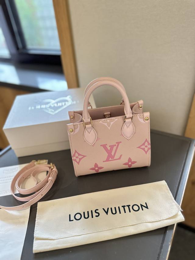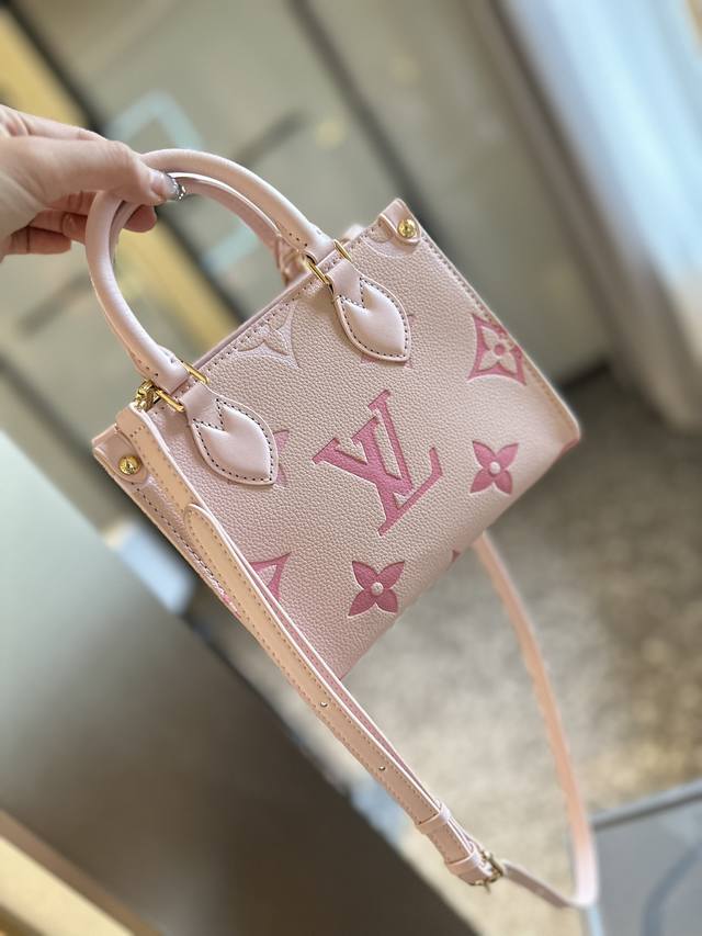 Lv本款onthego手袋释放monogram Empreinte压纹皮革的娴雅意味,可为当季造型注入盎然春意。充裕容量满足都市出行或商务所需,顶部手柄和长肩带实现 多种背携方式。尺寸18Cm