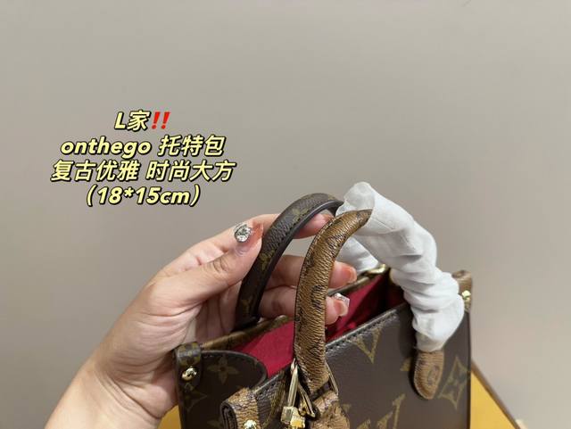 配盒尺寸18.15 Lv Onthego 托特包 轻松演绎复古时髦 包型挺阔,简约而不简单不需要过多的装饰,日常搭配西装和t恤,就能将高级感体现的淋漓尽致!