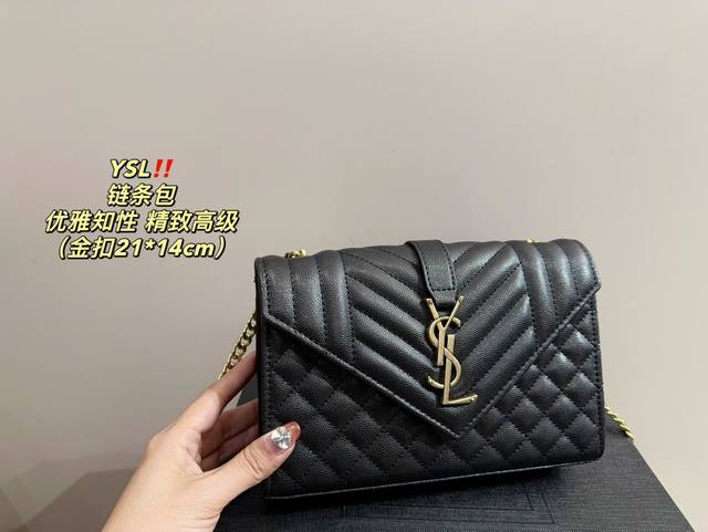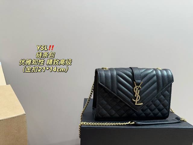 配礼盒 Ysl 圣罗兰v格 信封包 Slp 信封包 原版粗旷鎏金链条 标签s*Int Laurent 链条包,圣罗兰 Ysl...