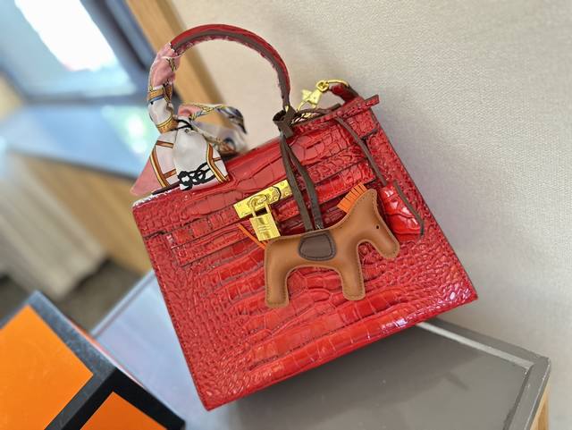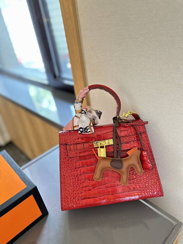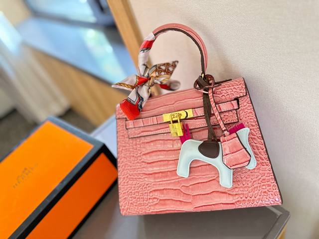 折叠礼盒包装 爱马仕凯莉 鳄鱼纹hermes Kelly 凯丽系列 最新色 官网同步 原版复刻五金 进口纯皮皮料 一比一对版 手提单肩 白富美必备 超级百搭 大
