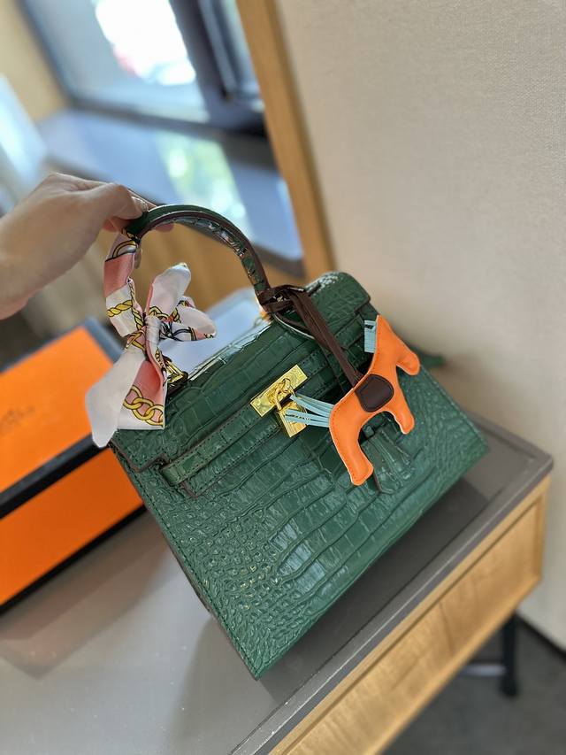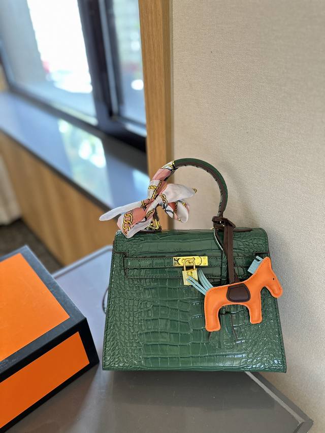 / 折叠礼盒包装 爱马仕凯莉 鳄鱼纹hermes Kelly 凯丽系列 最新色 官网同步 原版复刻五金 进口纯皮皮料 一比一对版 手提单肩 白富美必备 超级百搭 大