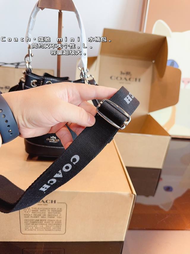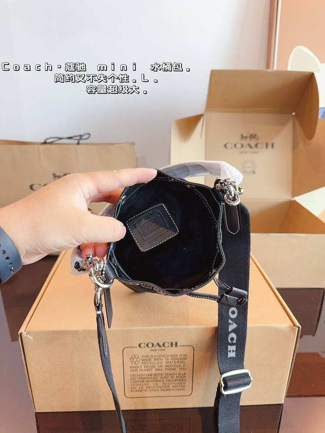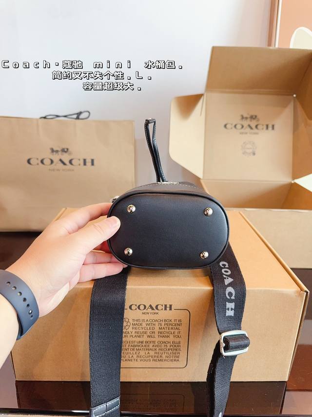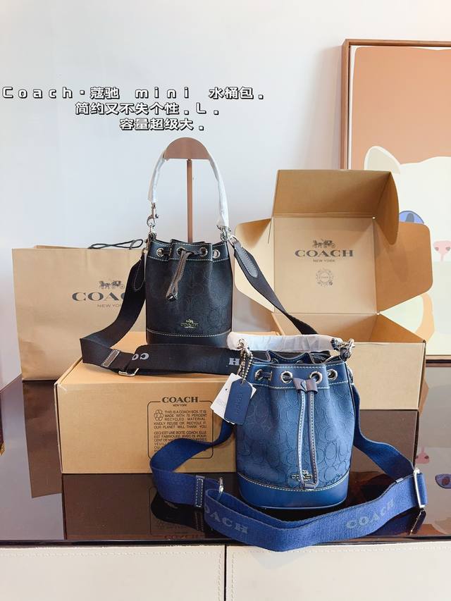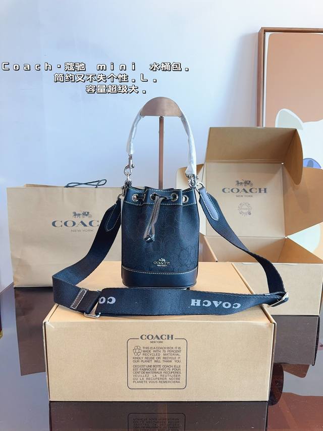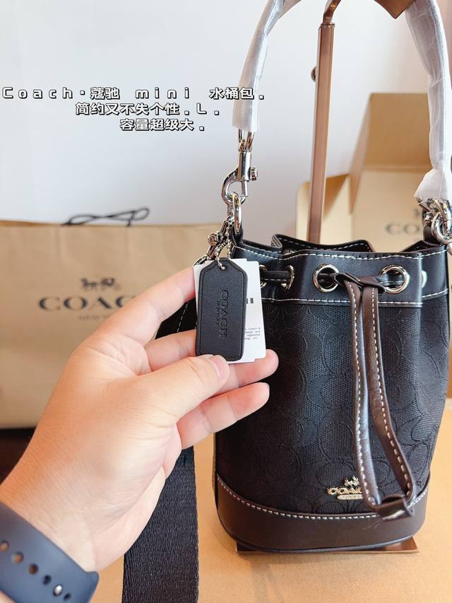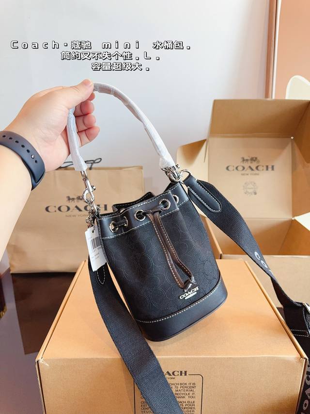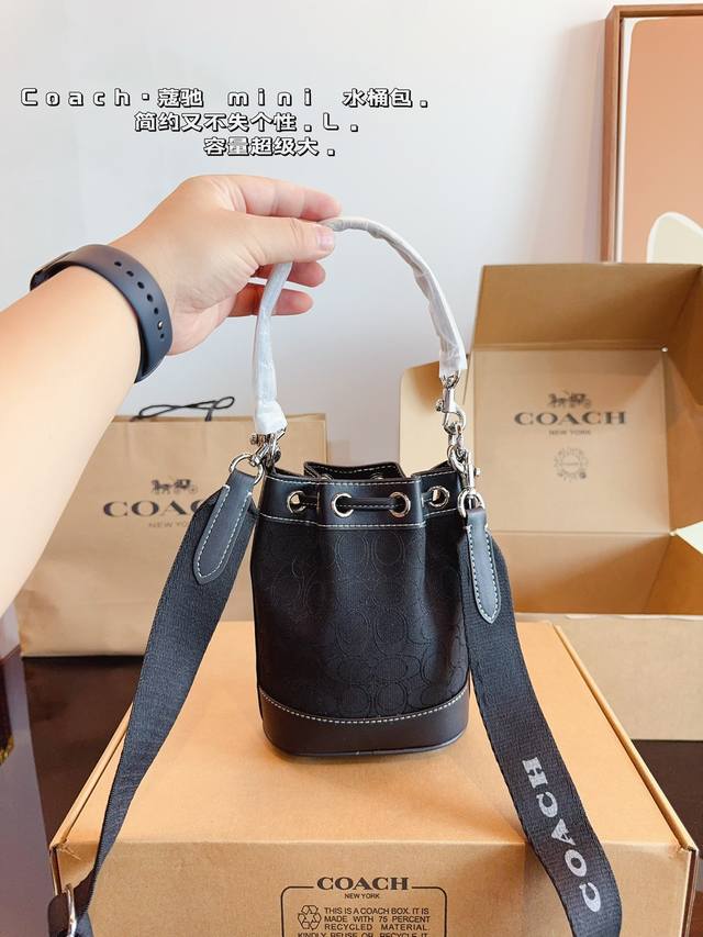 配礼盒. Coach 新款 Dempsey 系列迷你水桶包色系列 专柜款 定制面料 Logo五金 Logo内衬 尺寸 :15*10*19Cm