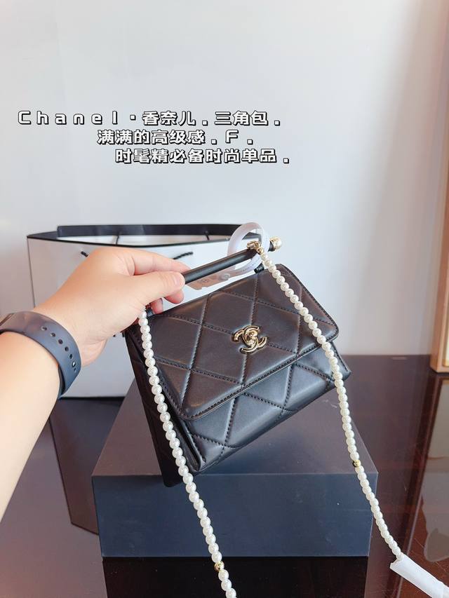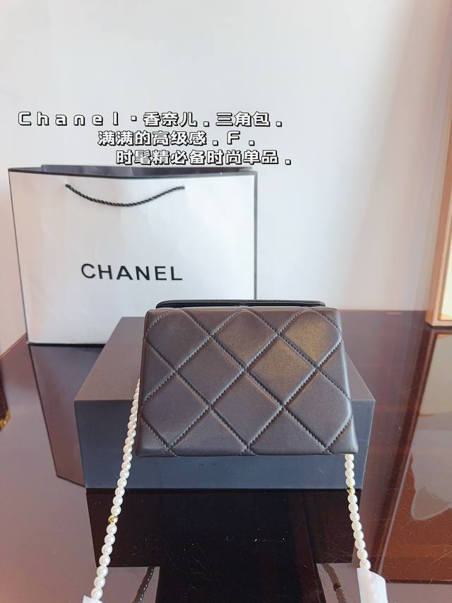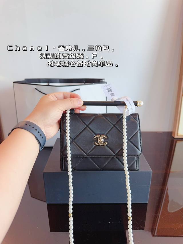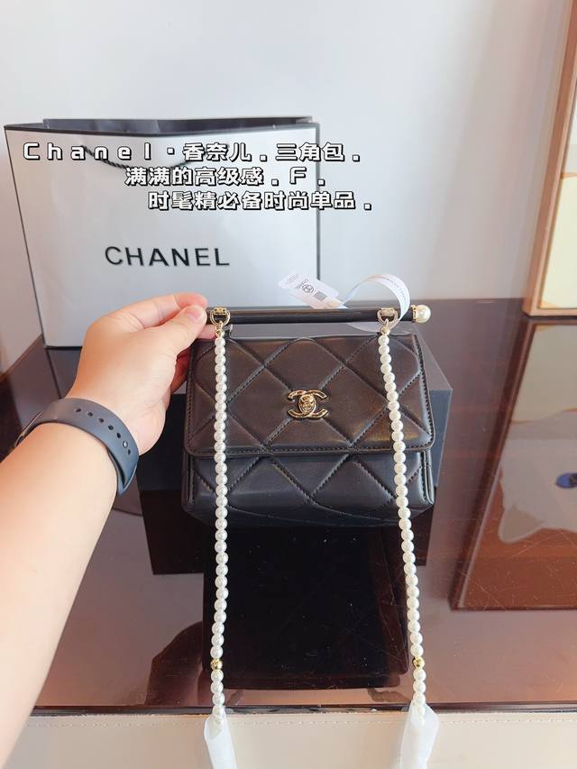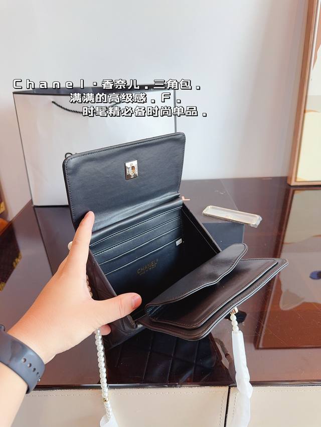 / 配礼盒. 香奈儿 Chanel 三角珍珠链条口红包. 简约大气风格 更加轻盈 可轻松驾驭各种风格 是每个酷酷女孩必入尺寸:18*13*19Cm