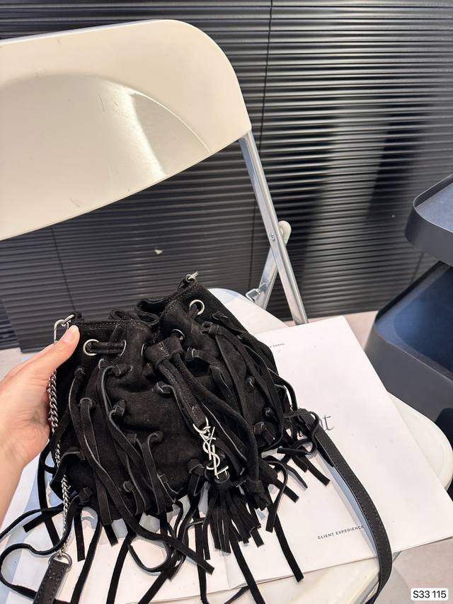 圣罗兰真的很懂我们小女生心理流苏小水桶狠狠把我拿捏了银标logo也是可活动的跟着流苏一起shakeshake Ysl可不能这么懂女人啊又是捂不住钱包的一天 尺寸:18 18 货号115