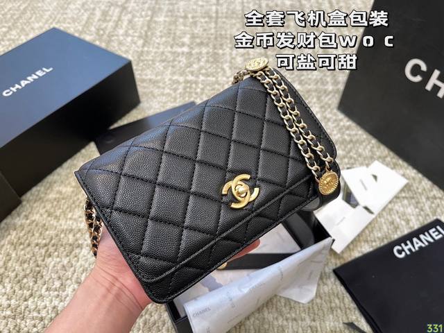 全套飞机盒包装 金币香奈儿发财包woc 小王炸款 Chanel 复古又休闲 爱了爱了 尺寸: 19 12