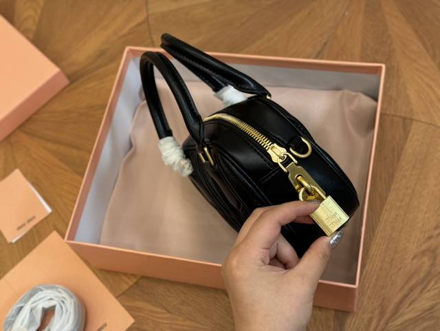 羊皮配盒 Size:20*14Cm Miumiu保龄球包包甜度刚好! 很难不爱啊啊! 又奶又千金的感觉! 可手拎也可斜挎...