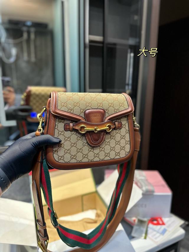 Gucci 马鞍包 高版本古奇lady Web复古二层牛皮搭配,简约百搭,经典之作,一如既往的喜欢!颜色风靡时尚圈的gucci,将马鞍包复古风格显示的淋漓尽致~Lady Web 织带复古包 B尺寸 大号25 20Cm小号21.18