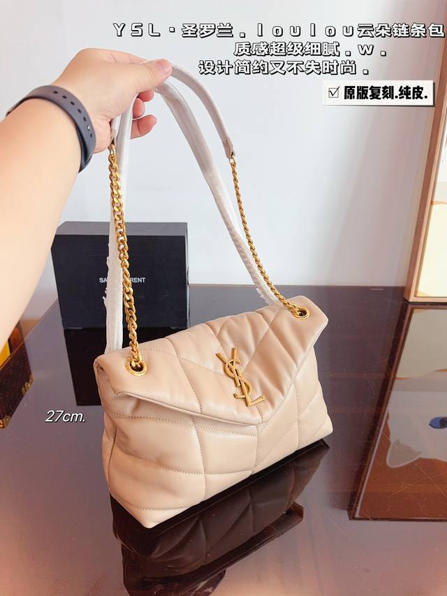 Loulou今年专柜超火爆 柔软舒适胖乎乎的外形像拿着棉花糖颜值很高的一款呀 实用性满分+复古范十足怎么搭配都好看又百搭自圣罗兰 尺寸:27*9*16 22*7*14Cm