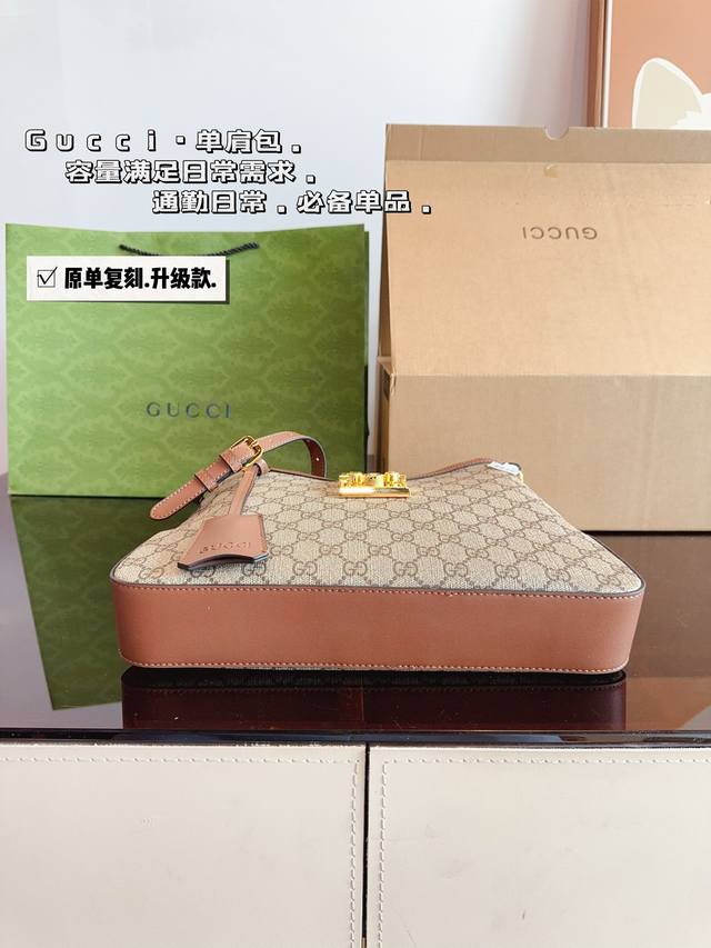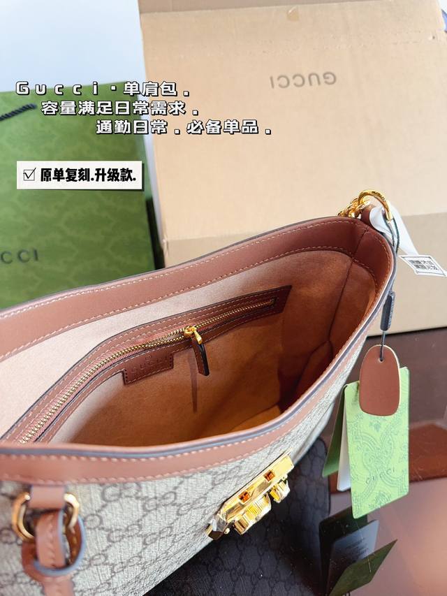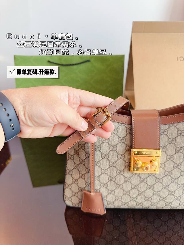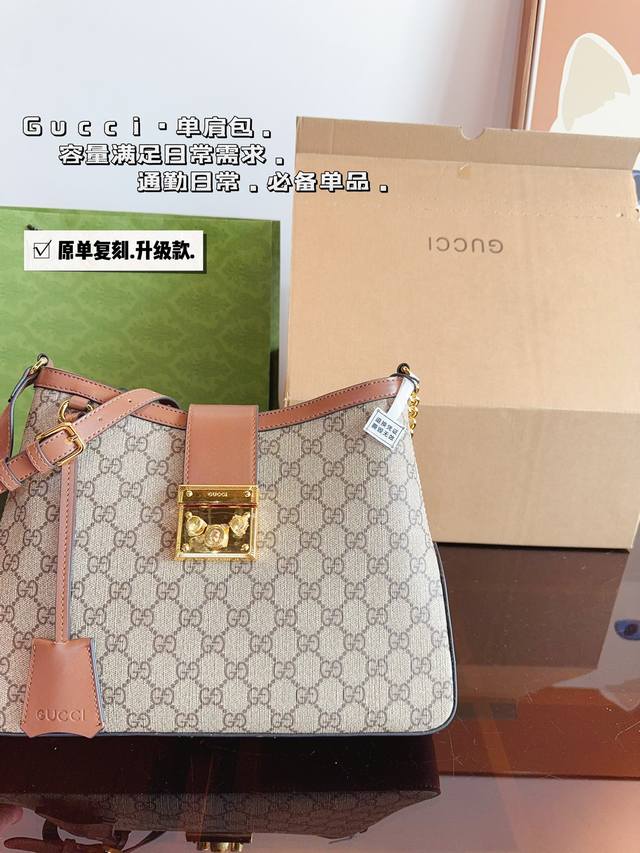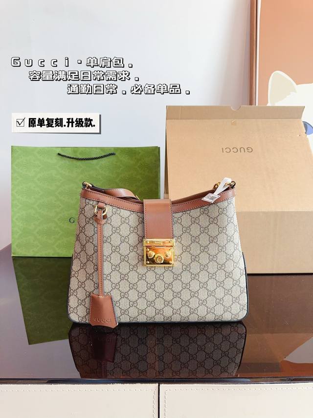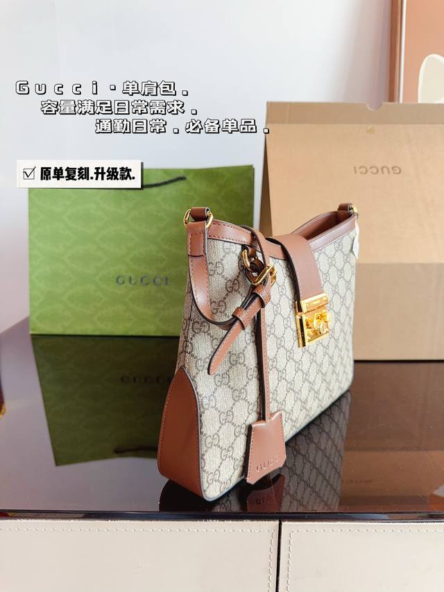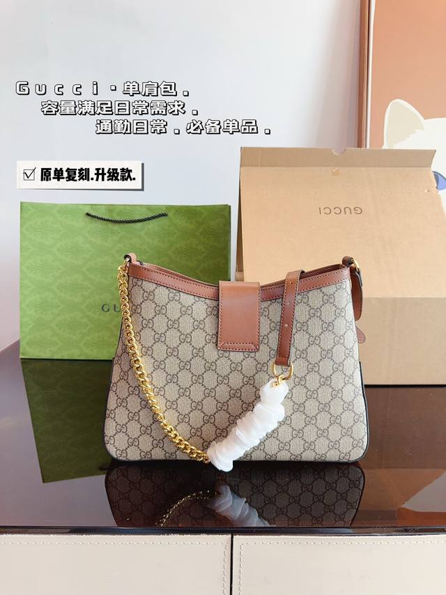 Gucci Padlock古驰新款链条单肩包,现货秒发!经典gucci双g字母印花高级人造革面料配进口平纹二层牛皮,带logo弹簧式方锁装饰,肩带链条拼接款 也可以双根单肩,包包内部设计有插卡袋 尺寸32*5*23Cm