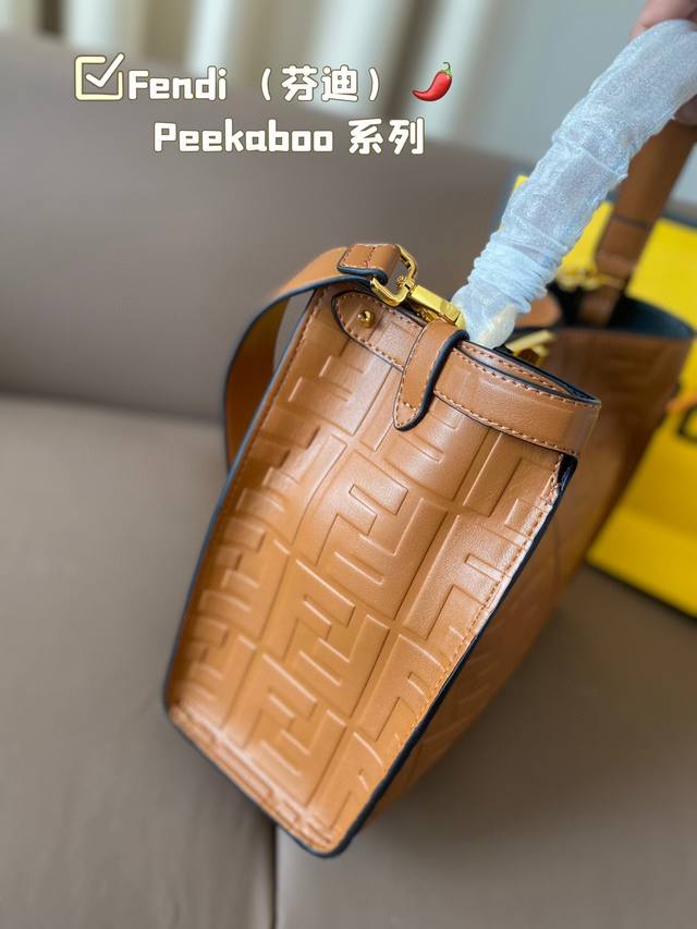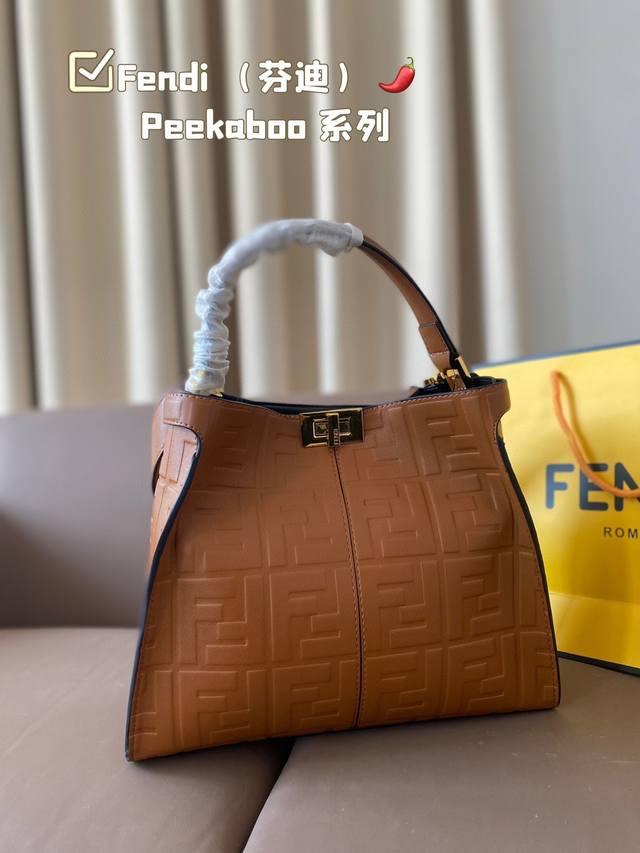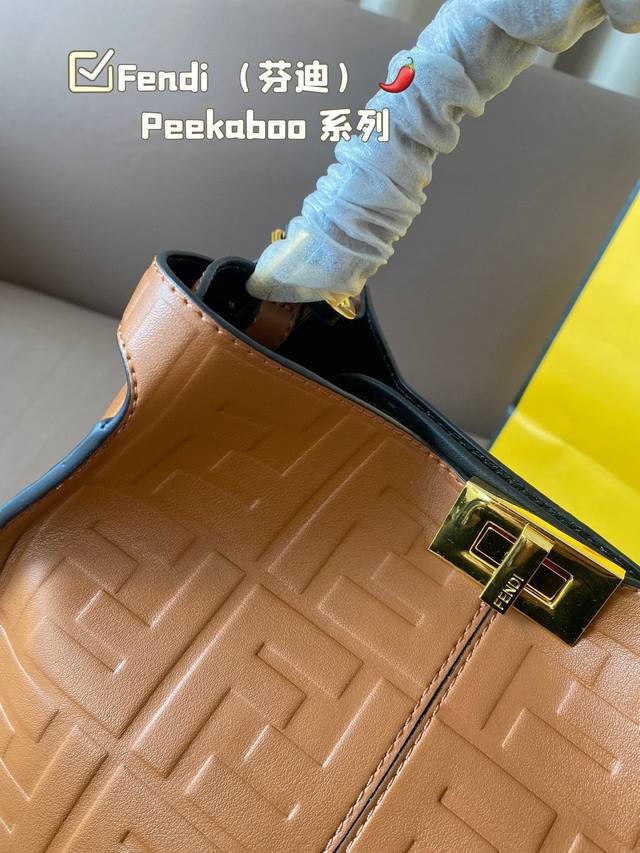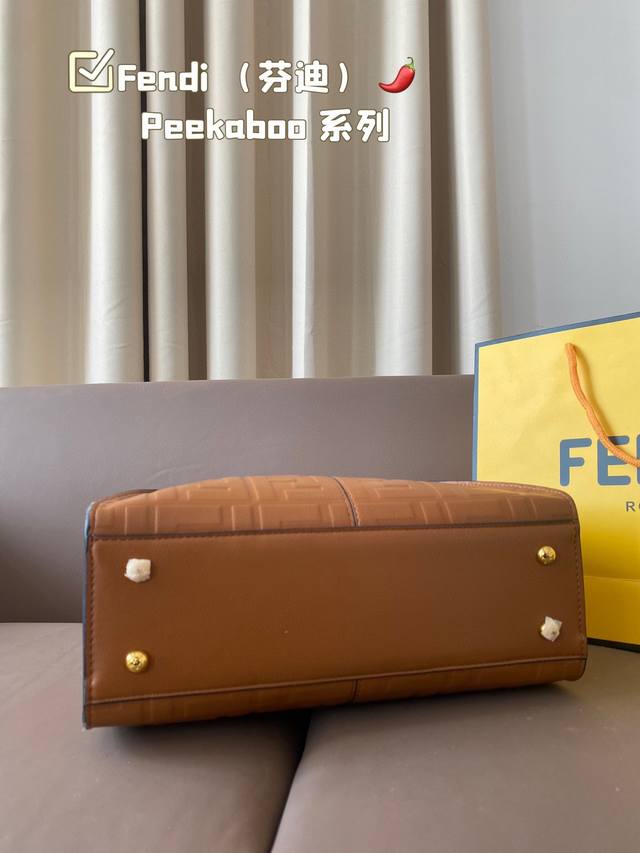 / Fendi 芬迪 88 周年之年 Fendi手袋 质感光滑 明线剪裁修饰 Peekaboo转锁开合 硬隔板并设有一个拉链口袋 单手柄 镀钯饰面金属配饰 镌刻fe