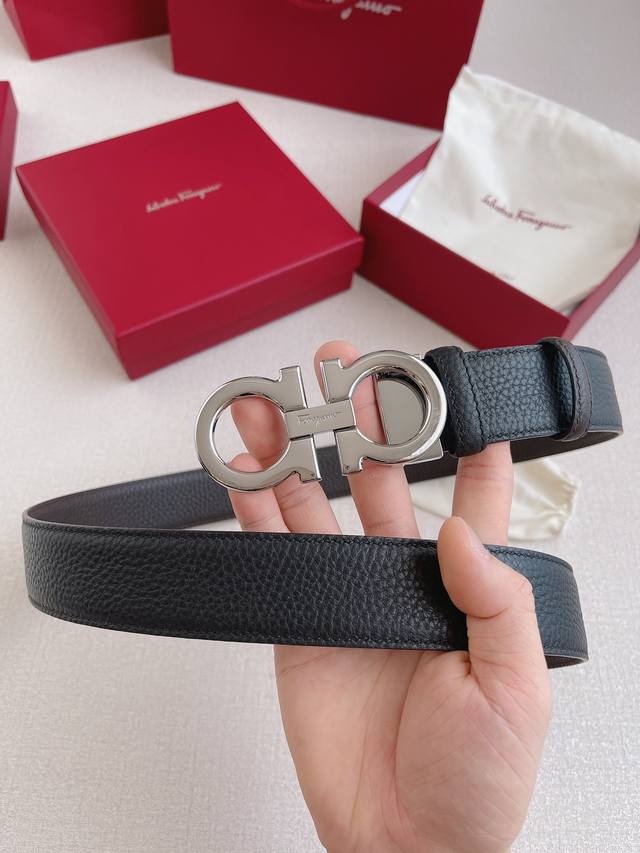 顶级原单复刻版 ,配送专柜全套礼盒包装进口原厂头层牛皮皮带 男士商务休闲腰带 Ferragamo.菲拉格慕 支持nfc扫码 宽度3.5Cm 高级定制款 双面进口