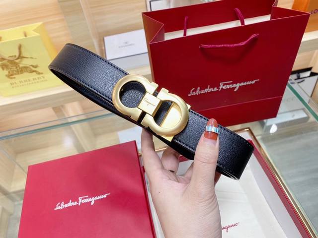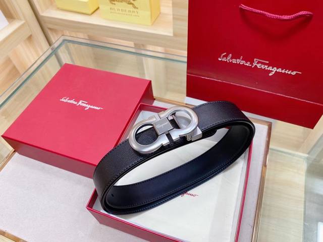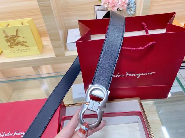 菲拉格慕 Salvatore Ferragamo 意大利 宽度3.5Cm 精美扣头 不褪色 小牛皮 手感极佳 上身郊果棒 商务休闲两用