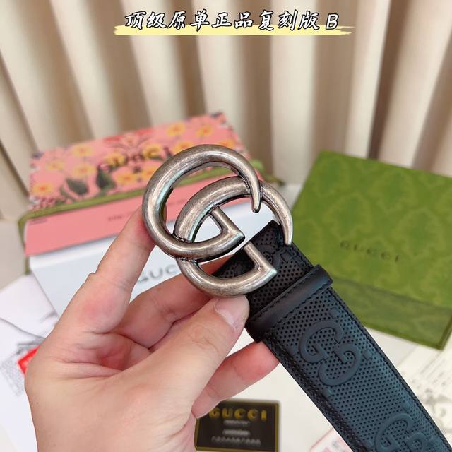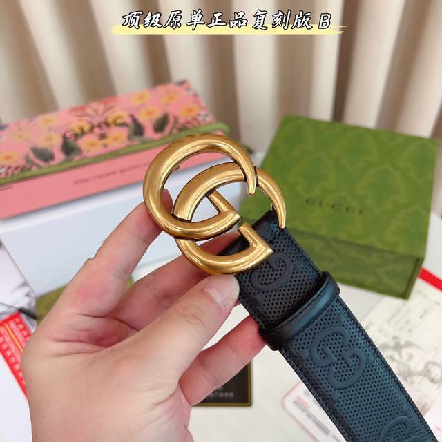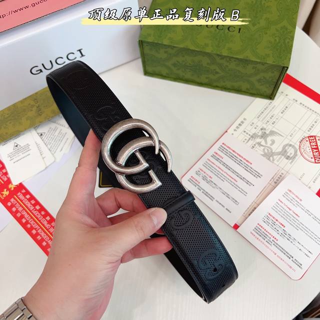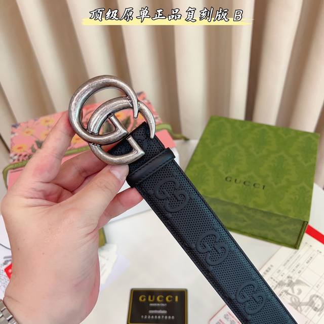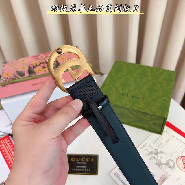 原版品质打孔 品牌:古奇G家 男款 颜色:黑 扣头:金 银 枪 扣头:原版精品纯铜五金扣头 带身:原版牛皮 尺寸:宽约:3.5Cm...