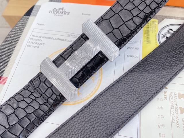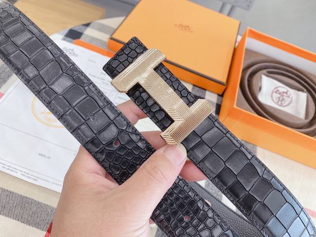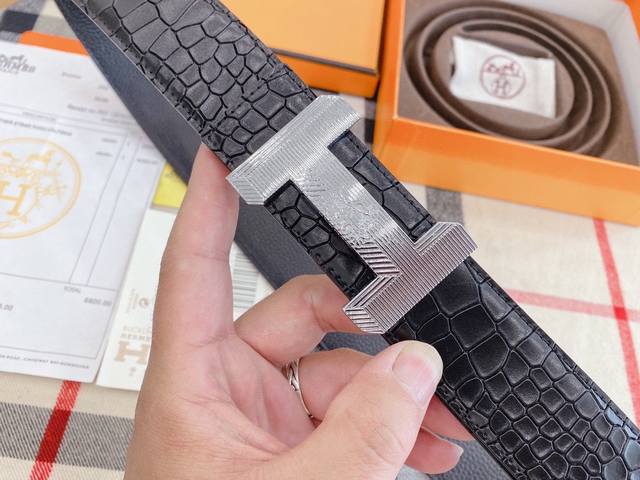 P250 Heres.爱马仕 皮带 原单专柜新款扣头搭配双面进口皮腰带龙纹最新皮纹此款 腰带 提升了皮带本身的档次带头精钢打磨...