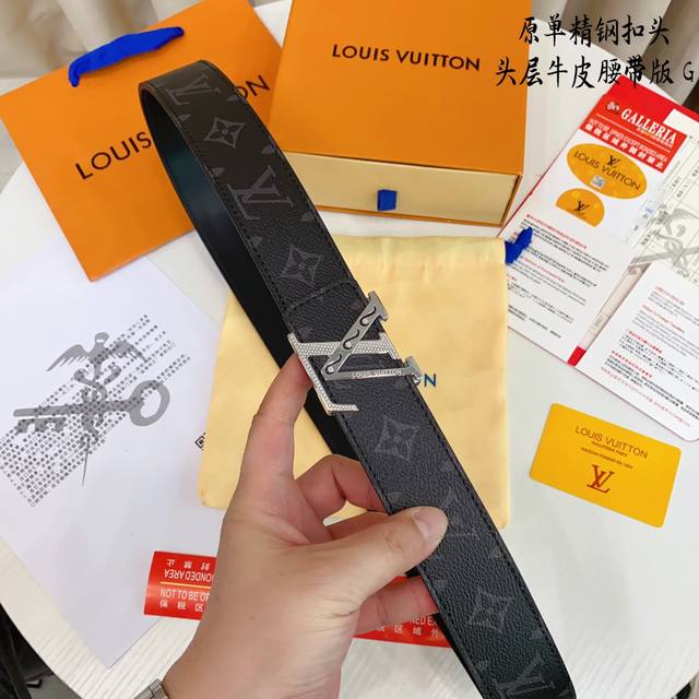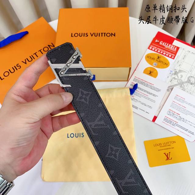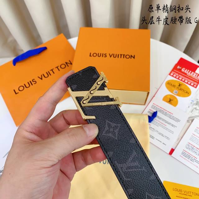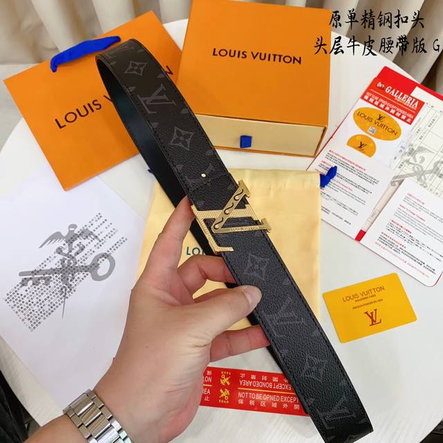 Lv最新款带身 4.0Cm 男士腰带 正贸易公司货 非市面一般仿货!美感之精髓 质量真心好!扣头可随意搭配!正品包装