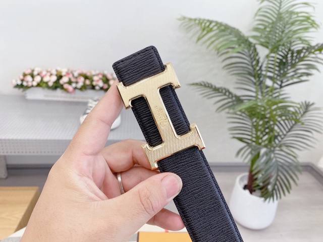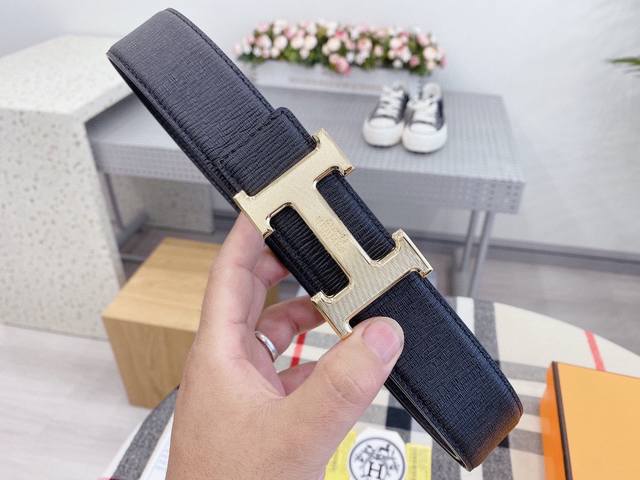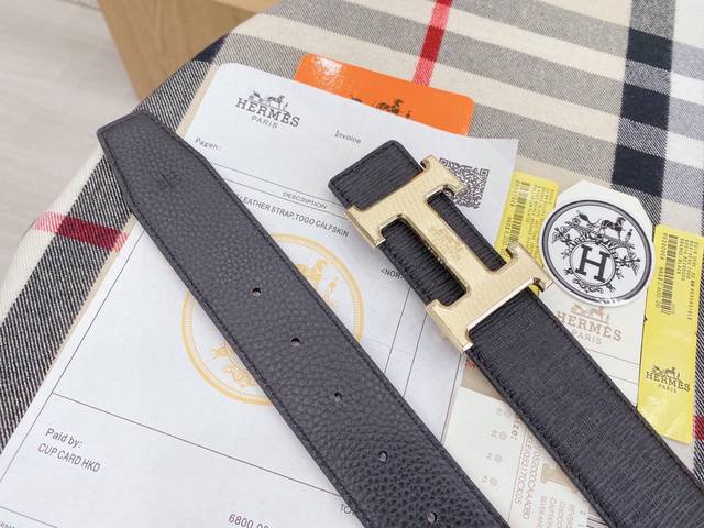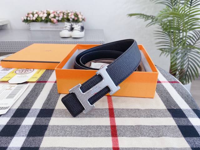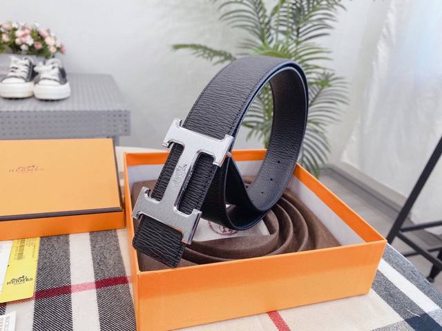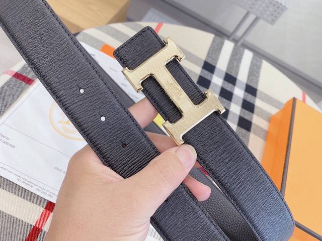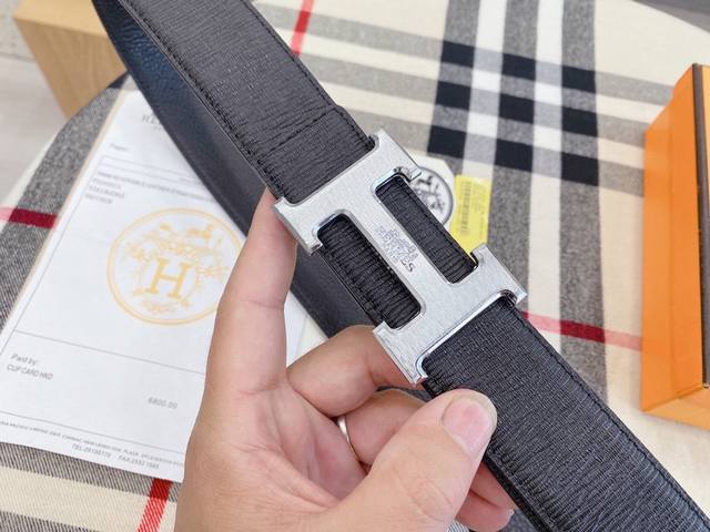 Hermes男款3.8Cm经典精钢H焊点金属扣搭配原版皮粒面,永久的选择!