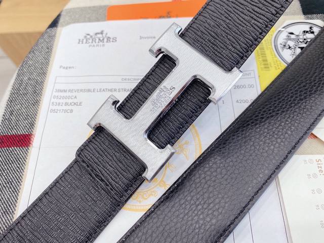 Hermes.爱马仕 官网同步 宽度38Mm 原版荔枝搭带身搭配原版精品钢扣 男装的经典搭配 可双面使用完美配饰