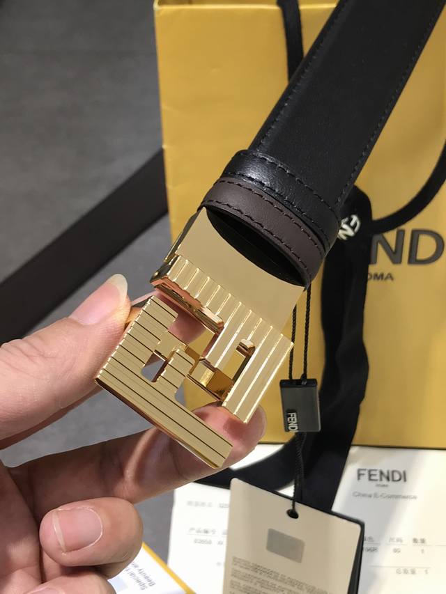 芬迪 宽35Mm,原单进口双面头层牛皮,搭配原单钌钯电镀f扣,手感.油边近乎完美,原产皮料定制,质感无可挑剔,出众的细节,高清实拍,货真价实,品质保证,非市场通货!