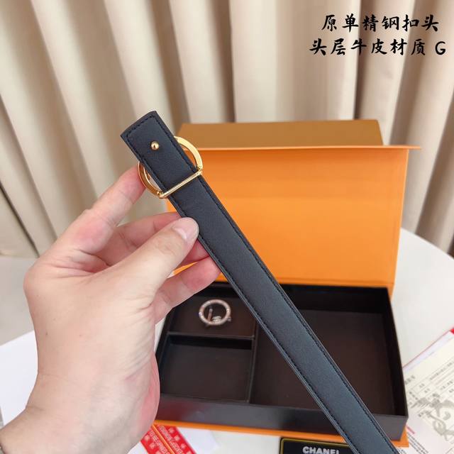 ①带①扣 ①带②扣 原单钢扣版香奈c家 打孔 正版开模 此款腰带双面采用原厂牛皮带身,精密电镀标志性纯钢搭扣 对版专柜。2.5Cm 如需木盒40