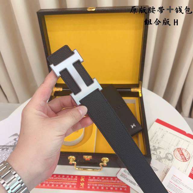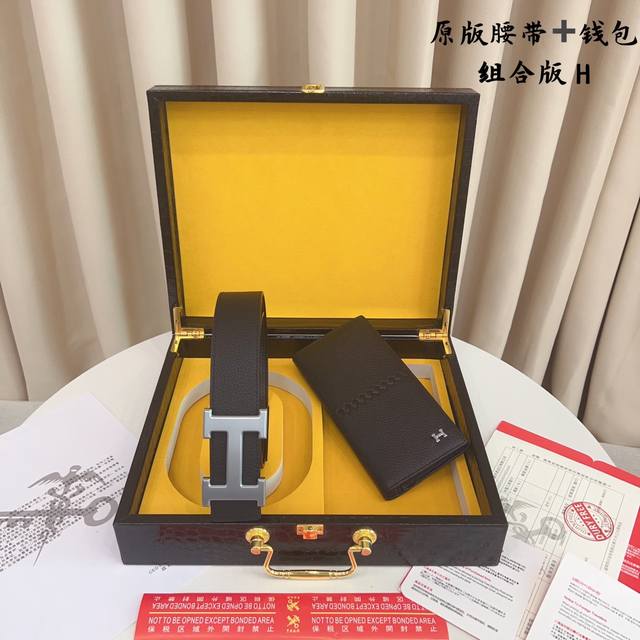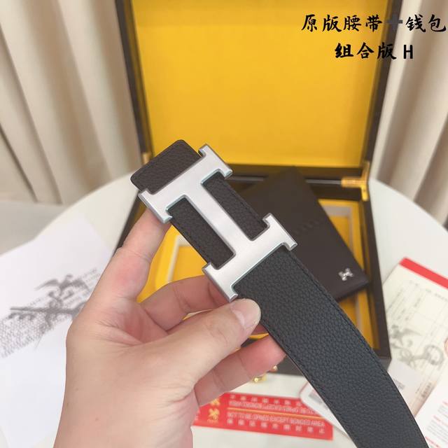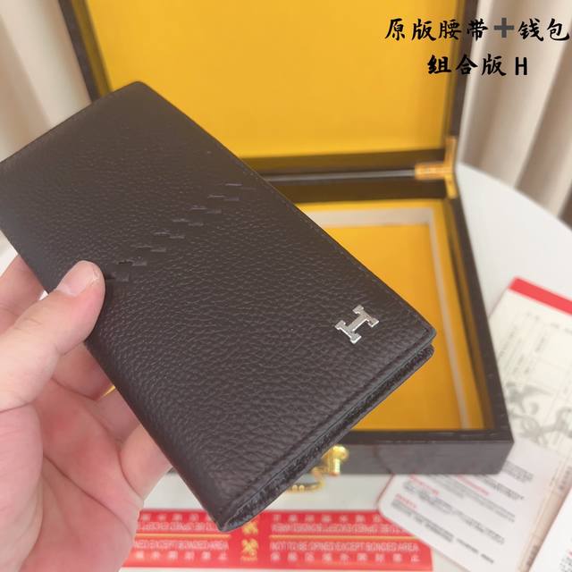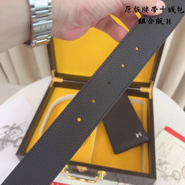 最新独家款 腰带钱包2件套爱马h家 腰带采用原版皮牛皮带身,带宽3.8Cm。扣头采用原版精钢五金扣头。原版钱包原版复刻。独家定制2件套高端包装。高端大气送礼之佳
