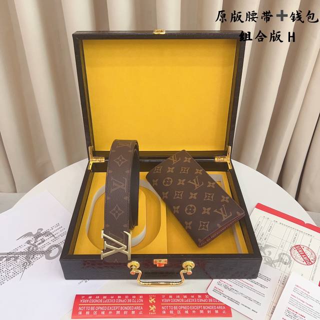 / 最新独家款 腰带钱包2件套路易l家 腰带采用原版皮牛皮带身,带宽3.8Cm。扣头采用原版精钢五金扣头。原版钱包原版复刻。独家定制2件套高端包装。高端大气送礼之佳