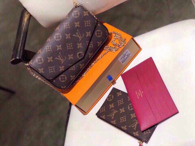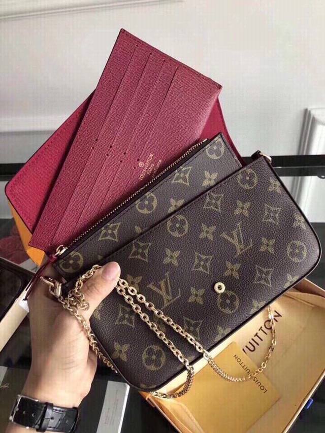 / 颜色 大红 紫红尺寸 22X13型号 61276性价比超高经典三件套实物拍摄-做工精致销量冠军 Louis Vuittonfelicie手袋优雅华贵,内含两个可