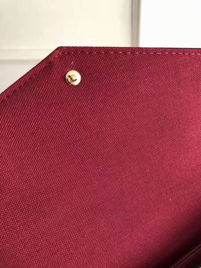颜色 大红 紫红尺寸 22X13型号 61276性价比超高经典三件套实物拍摄-做工精致销量冠军 Louis Vuittonfelicie手袋优雅华贵,内含两个可脱卸口袋,是携带整理您的日常用品的时尚之选。它不仅仅是款钱夹,除去金色链条后,它还可以用作迷人的手包或小型手袋欢迎对比质量