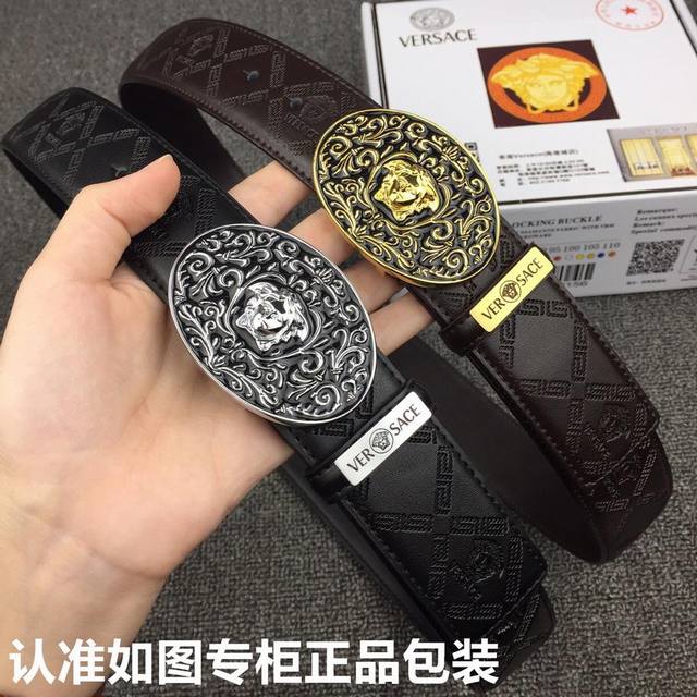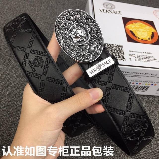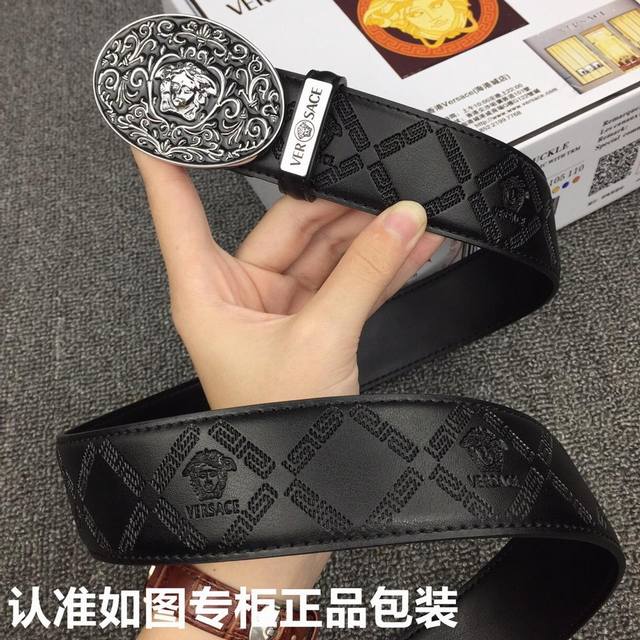 等级:意大利进口百分百头层牛皮,范思哲.Versace,世界著名奢侈品品牌,美人头经典之作,进口头层牛皮,国外专柜有同款。24K纯钢扣,金色银色时尚又不失优雅。高调炫出来吧,西裤牛仔裤任意搭配,永不掉色,背面logo清晰可见